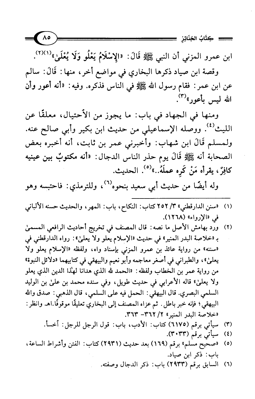 ابن عمرو المحزني أن النبي - صلى الله عليه وسلم - قَالَ: "الإِسْلَامُ يَعْلُو وَلَا يُعْلَى" (¬1) (¬2).