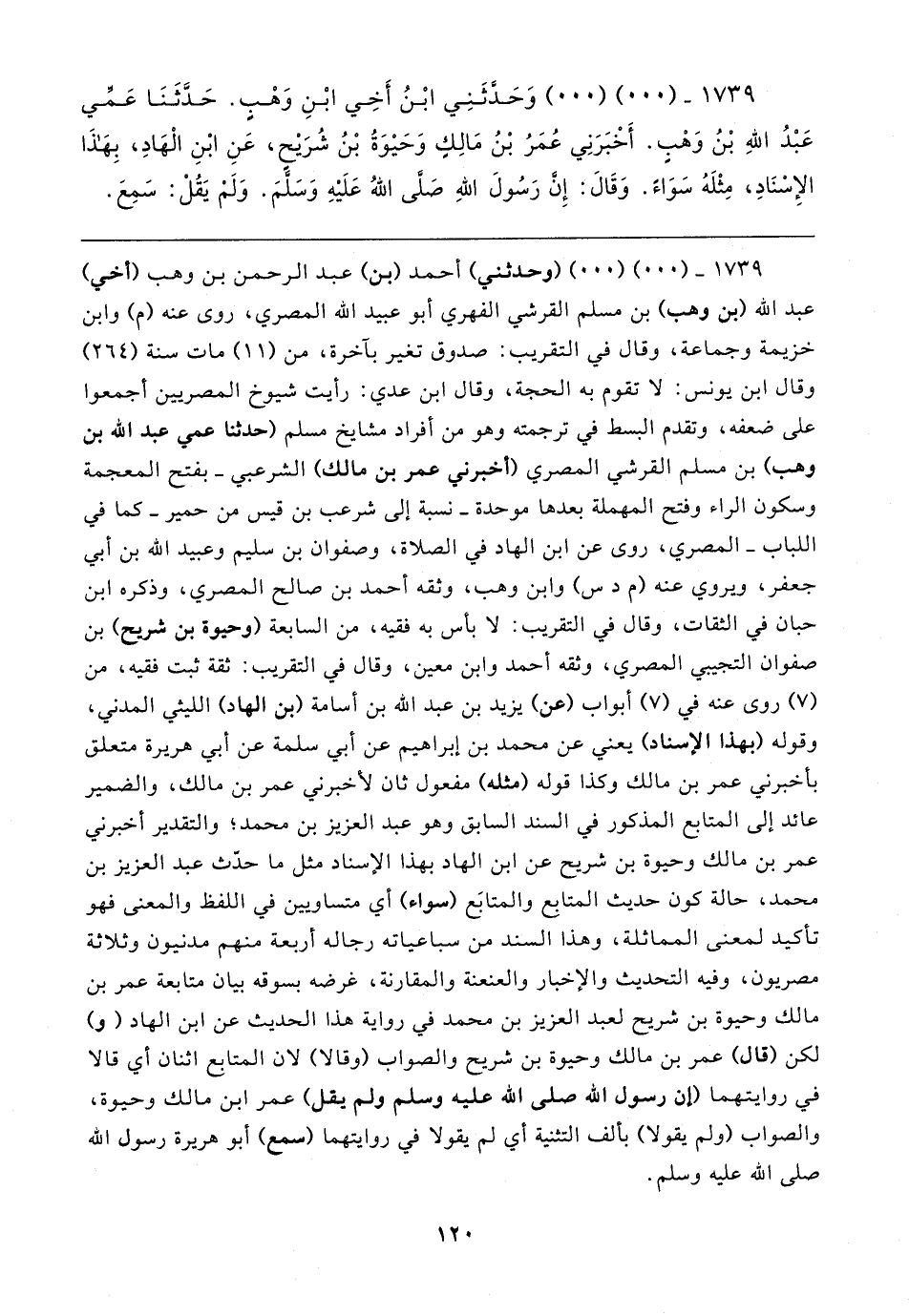 ١٧٣٩ - (٠٠) (٠٠) وَحدَّثَنِي ابْنُ أَخِي ابْنِ وَهْبٍ. حَدَّثَنَا عَمي عَبْدُ اللهِ بْنُ وَهْبٍ. أَخْبَرَنِي عُمَرُ بْنُ مَالِكٍ وَحَيوَةُ بْنُ شُرَيح، عَنِ ابْنِ الْهَادِ، بِهَذَا الإِسْنَادِ، مِثْلَهُ سَوَاءً. وَقَال: إِن رَسُولَ اللهِ صَلَّى اللهُ عَلَيهِ وَسَلَّمَ. وَلَمْ يَقُلْ: سَمِعَ