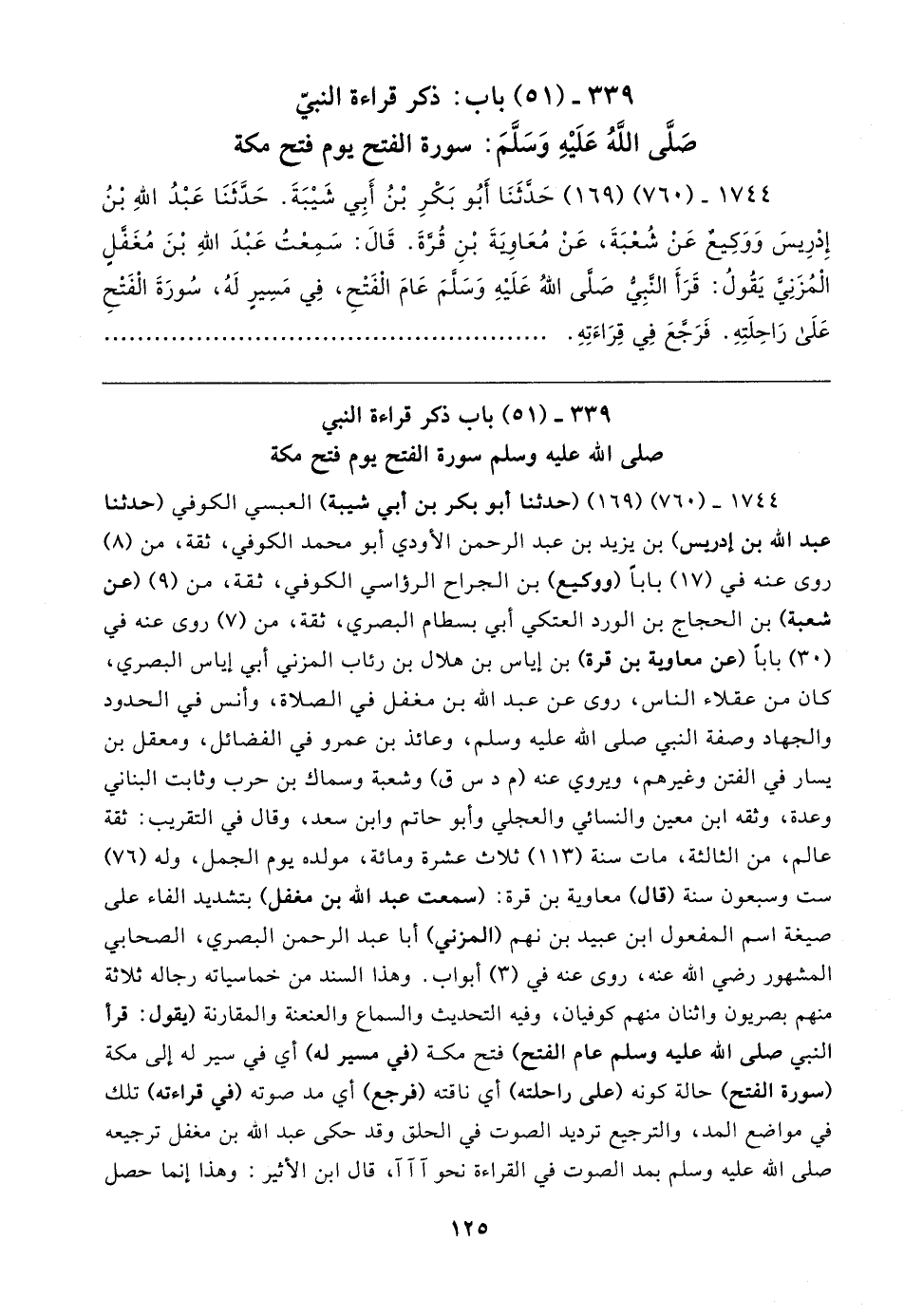 ٣٣٩ - (٥١) باب ذكر قراءة النبي صلى الله عليه وسلم سورة الفتح يوم فتح مكة
