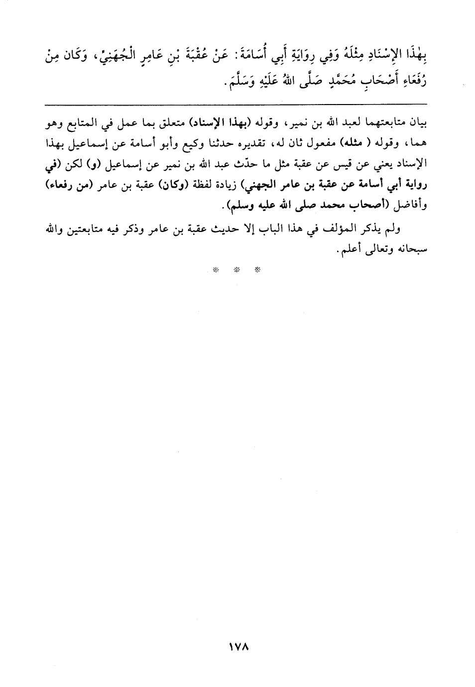 بِهذَا الإِسْنَادِ مِثْلَهُ وَفِي رِوَايَةِ أبِي أُسَامَةَ: عَنْ عُقْبَةَ بْنِ عَامِرٍ الْجُهَنِي، وَكَان مِنْ رُفَعَاءِ أَصْحَابِ مُحَمَّدٍ صَلَّى اللهُ عَلَيهِ وَسَلَّمَ
