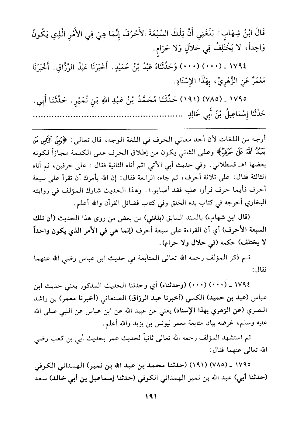 ١٧٩٥ - (٧٨٥) (١٩١) (حدثنا محمد بن عبد الله بن نمير) الهمداني الكوفي (حدثنا أبي) عبد الله بن نمير الهمداني الكوفي (حدثنا إسماعيل بن أبي خالد) سعد