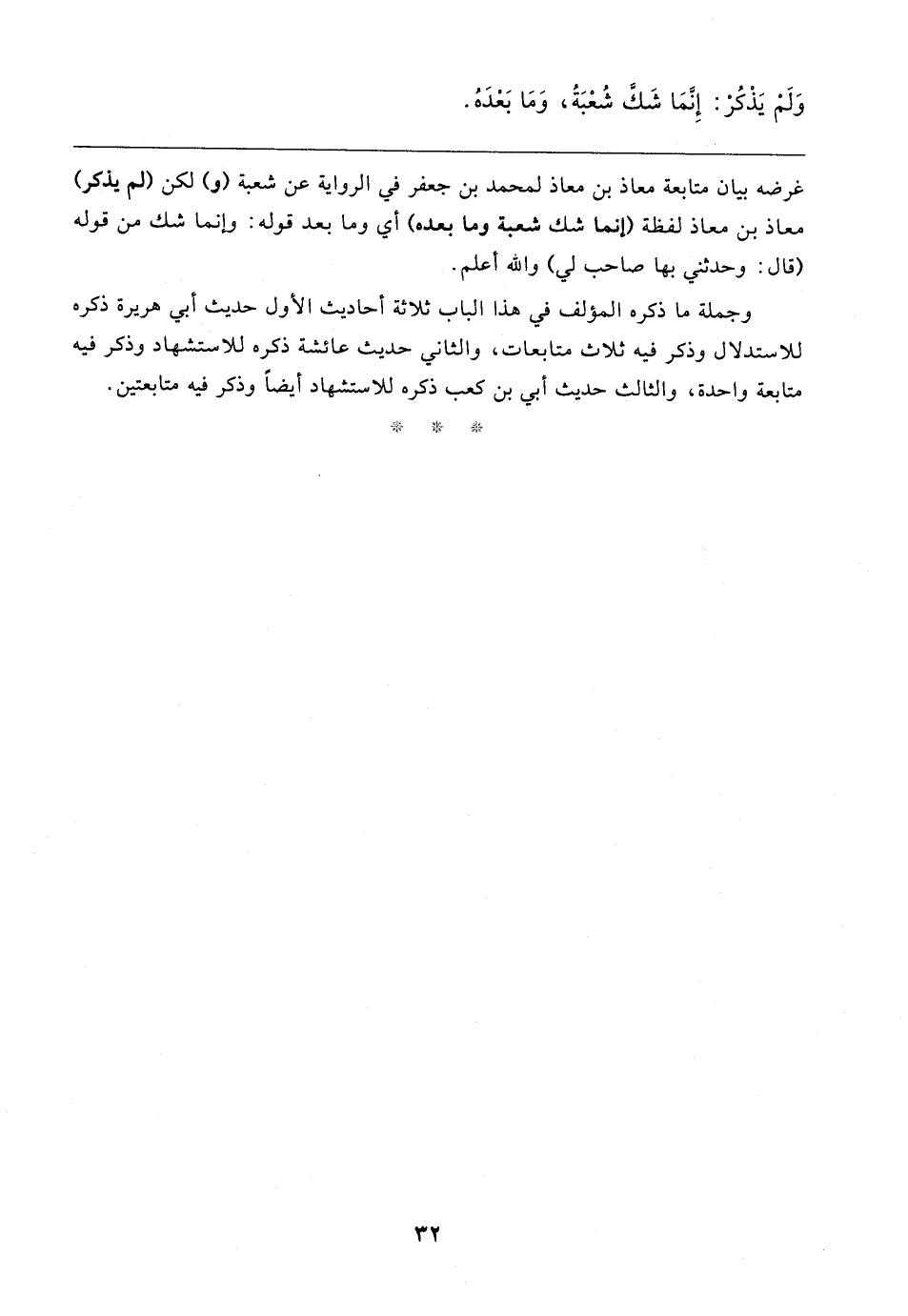 وَلَمْ يَذْكُرْ: إِنَّمَا شَك شُعْبَةُ، وَمَا بَعْدَهُ