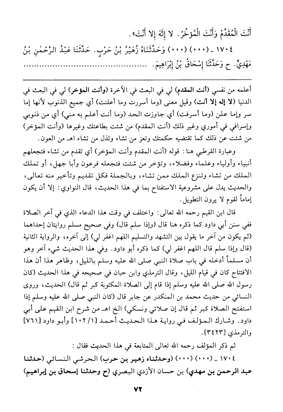 أَنْتَ الْمُقَدِّمُ وَأَنْتَ الْمُؤخِّرُ. لا إِلَهَ إِلا أَنْتَ".