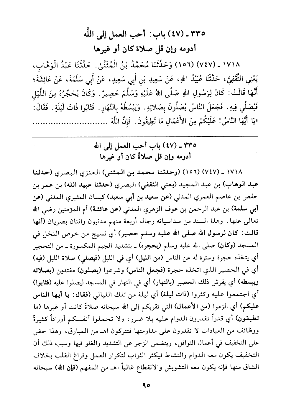 ٣٣٥ - (٤٧) باب أحب العمل إلى الله أدومه وإن قل صلاةً كان أو غيرها