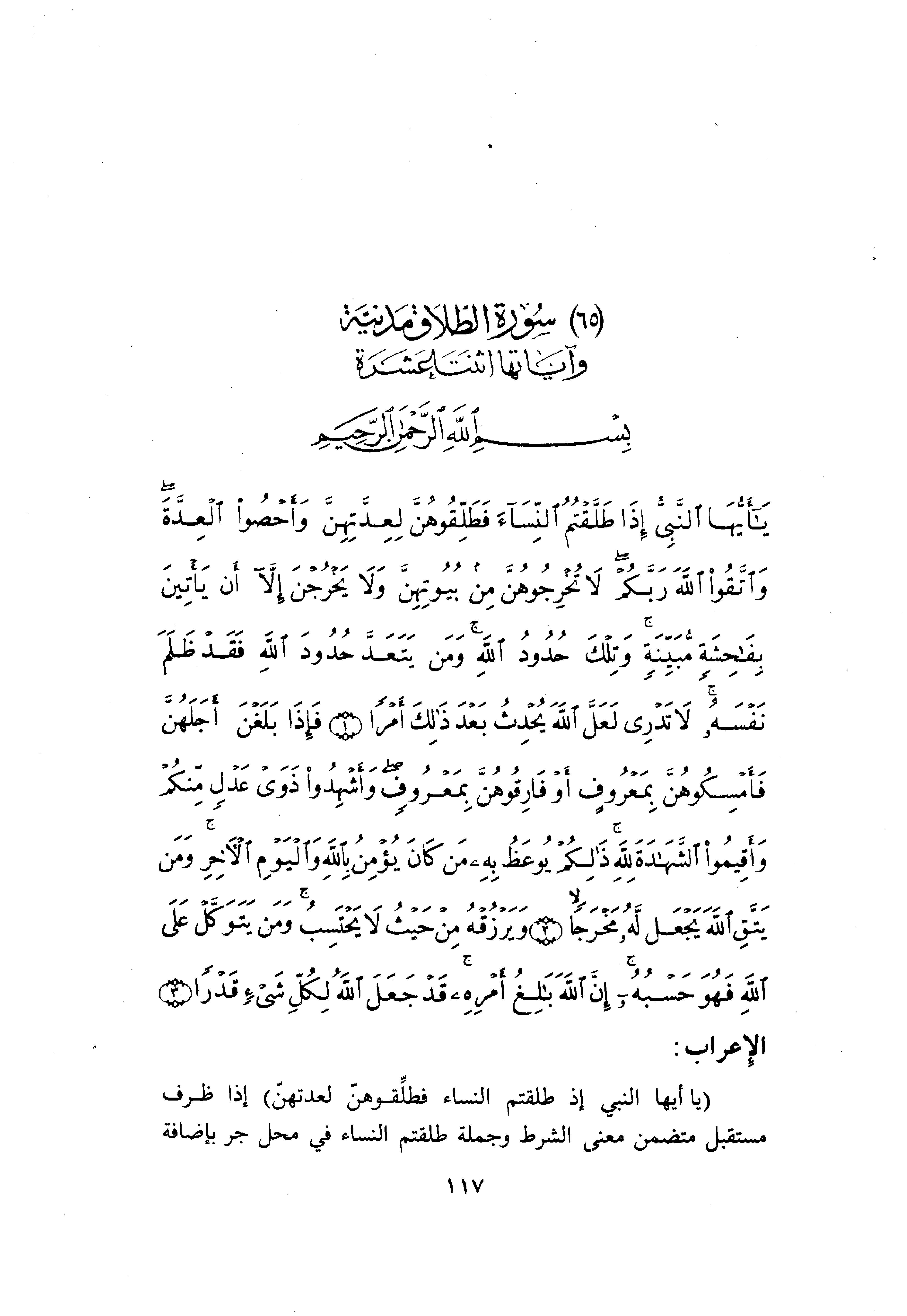(65) سورة الطّلاق مدنيّة وآياتها اثنتا عشرة
