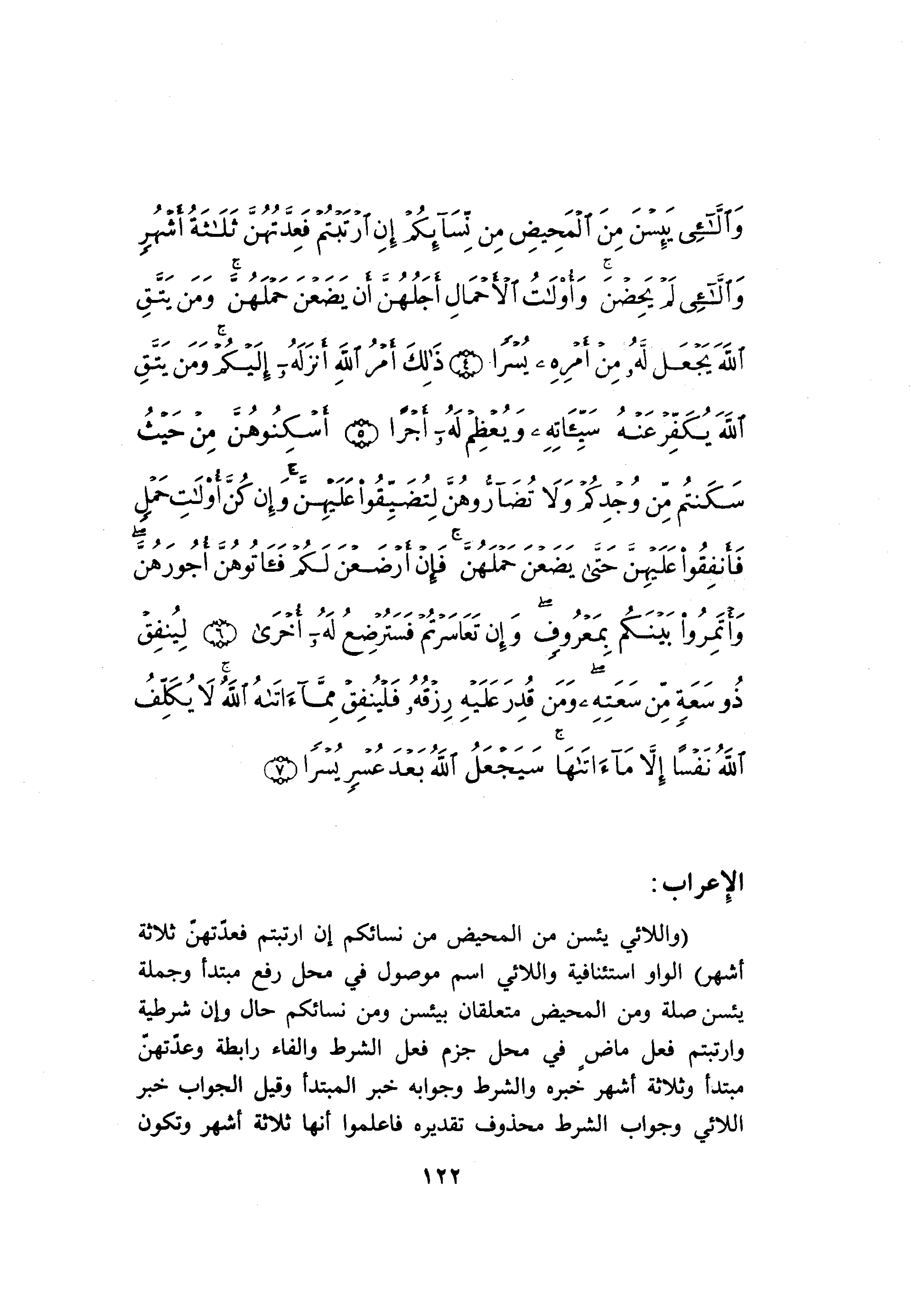 (وَاللَّائِي يَئِسْنَ مِنَ الْمَحِيضِ مِنْ نِسائِكُمْ إِنِ ارْتَبْتُمْ فَعِدَّتُهُنَّ ثَلاثَةُ أَشْهُرٍ) الواو استئنافية واللائي اسم موصول في محل رفع مبتدأ وجملة يئسن صلة ومن المحيض متعلقان بيئسن ومن نسائكم حال وإن شرطية وارتبتم فعل ماض في محل جزم فعل الشرط والفاء رابطة وعدّتهنّ مبتدأ وثلاثة أشهر خبره والشرط وجوابه خبر المبتدأ وقيل الجواب خبر اللائي وجواب الشرط محذوف تقديره فاعلموا أنها ثلاثة أشهر وتكون