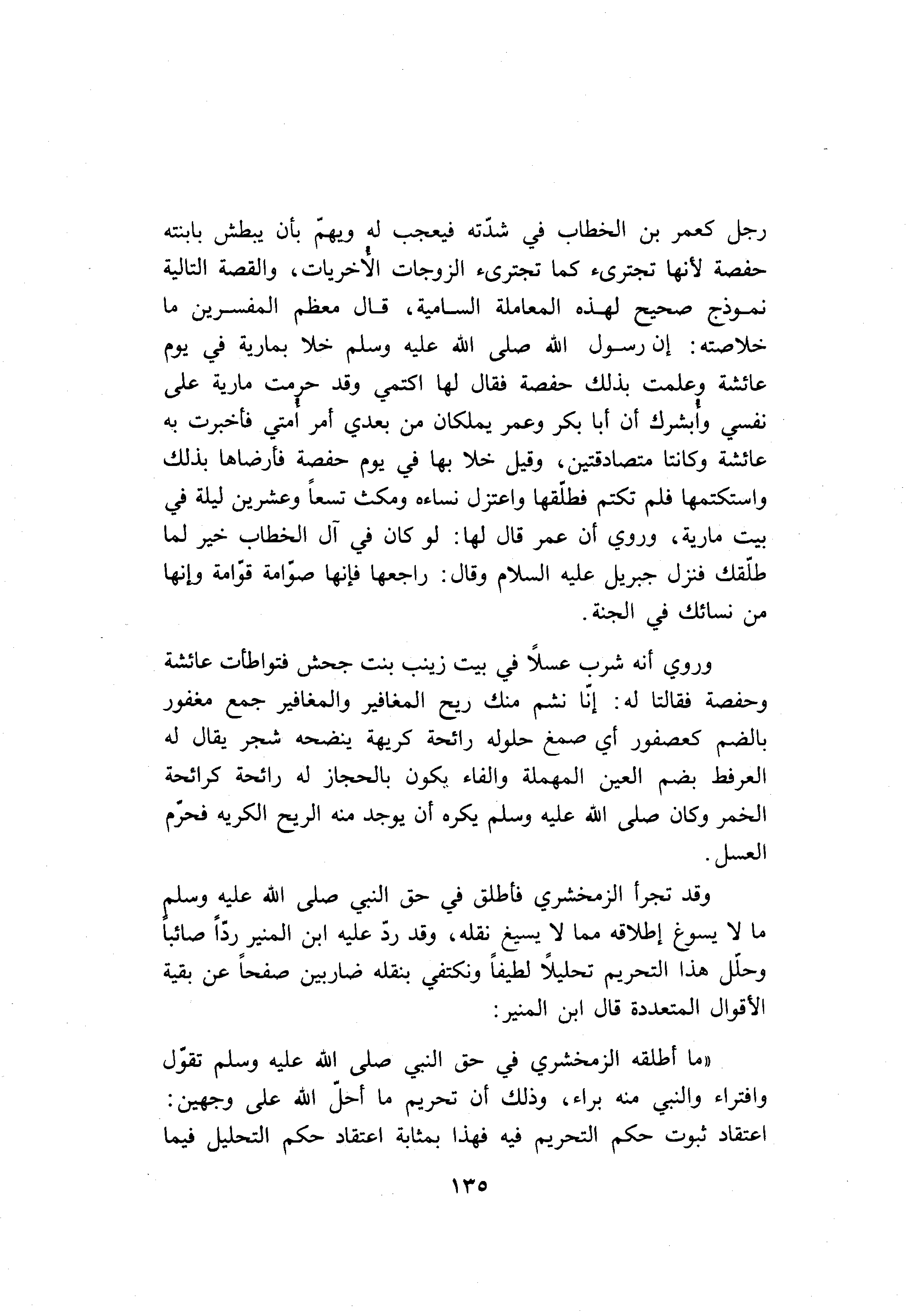 «ما أطلقه الزمخشري في حق النبي صلّى الله عليه وسلم تقوّل وافتراء والنبي منه براء، وذلك أن تحريم ما أحلّ الله على وجهين: