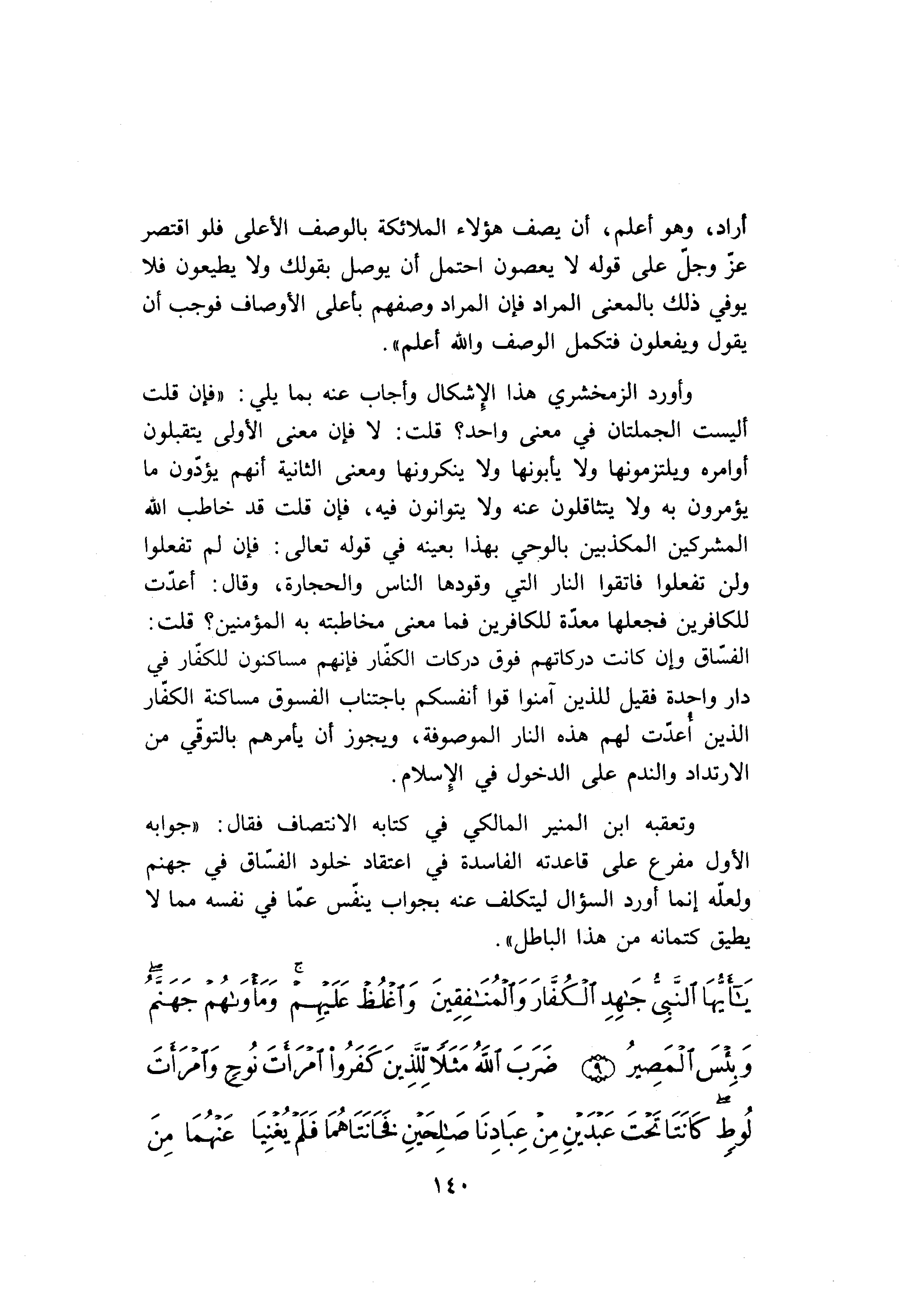 وتعقبه ابن المنير المالكي في كتابه الانتصاف فقال: «جوابه الأول مفرع على قاعدته الفاسدة في اعتقاد خلود الفسّاق في جهنم ولعلّه إنما أورد السؤال ليتكلف عنه بجواب ينفّس عمّا في نفسه مما لا يطيق كتمانه من هذا الباطل» .