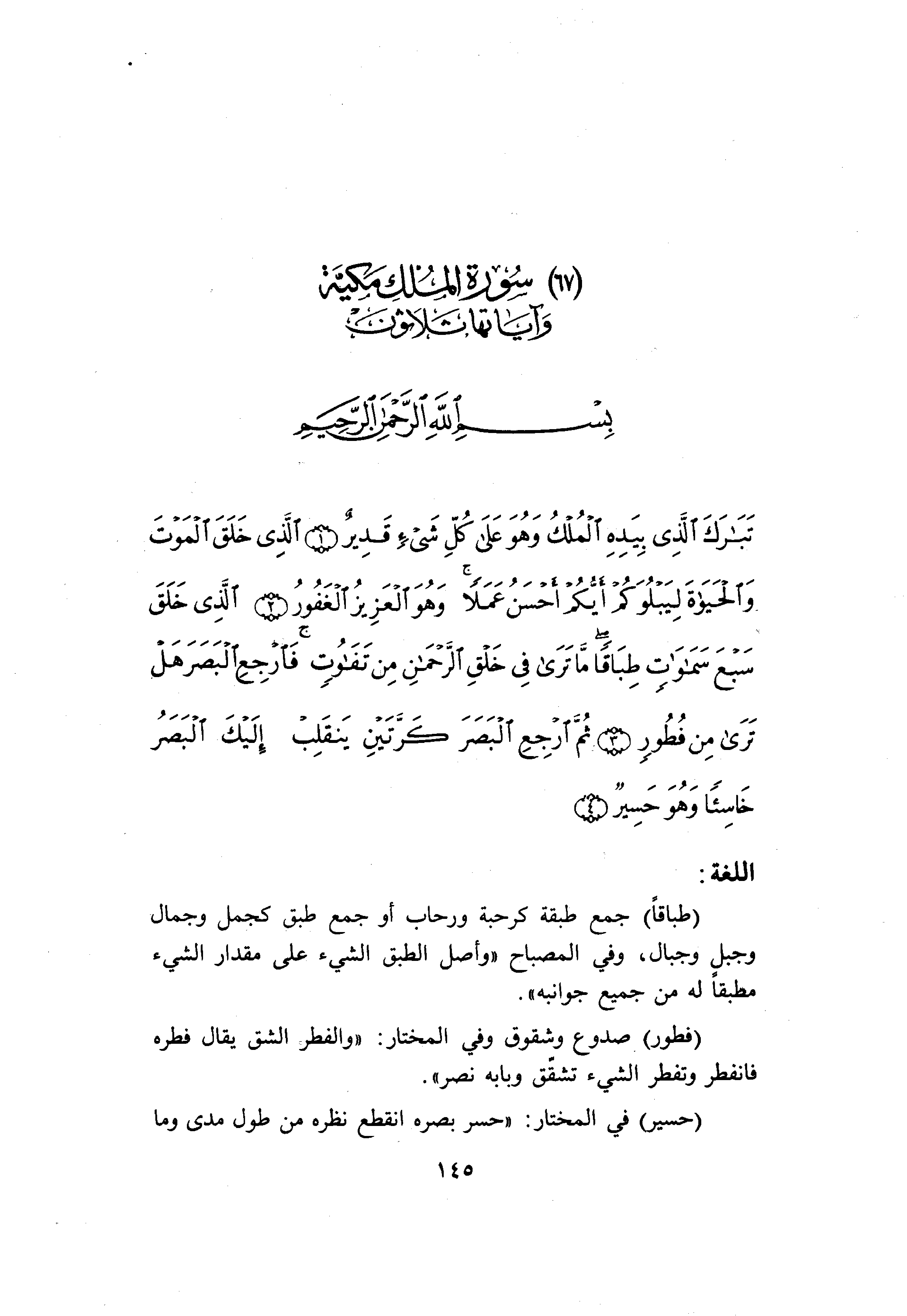 (طِباقاً) جمع طبقة كرحبة ورحاب أو جمع طبق كجمل وجمال وجبل وجبال، وفي المصباح «وأصل الطبق الشيء على مقدار الشيء مطبقا له من جميع جوانبه» .