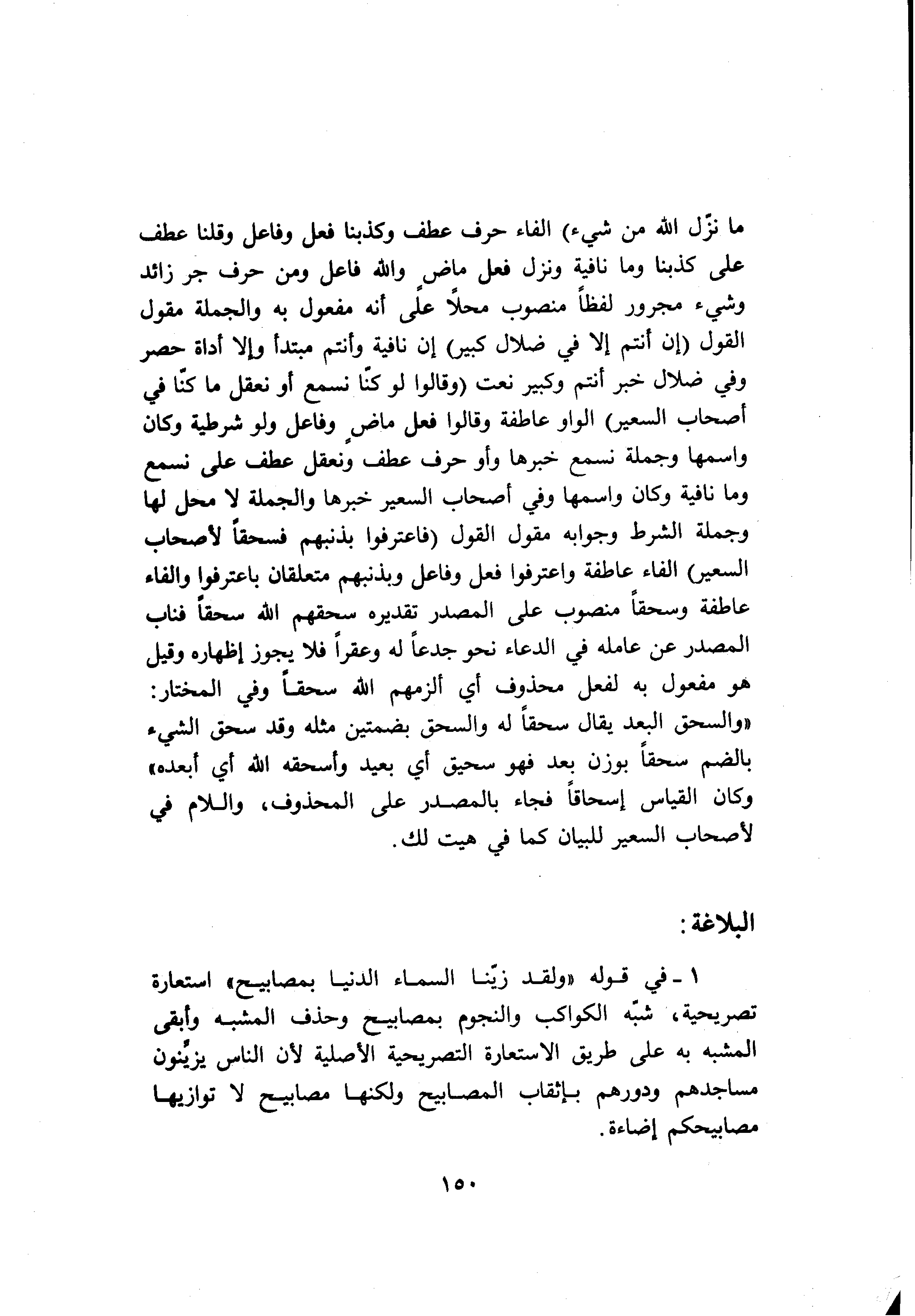 1- في قوله «ولقد زيّنا السماء الدنيا بمصابيح» استعارة تصريحية، شبّه الكواكب والنجوم بمصابيح وحذف المشبه وأبقى المشبه به على طريق الاستعارة التصريحية الأصلية لأن الناس يزيّنون مساجدهم ودورهم بإثقاب المصابيح ولكنها مصابيح لا توازيها مصابيحكم إضاءة.