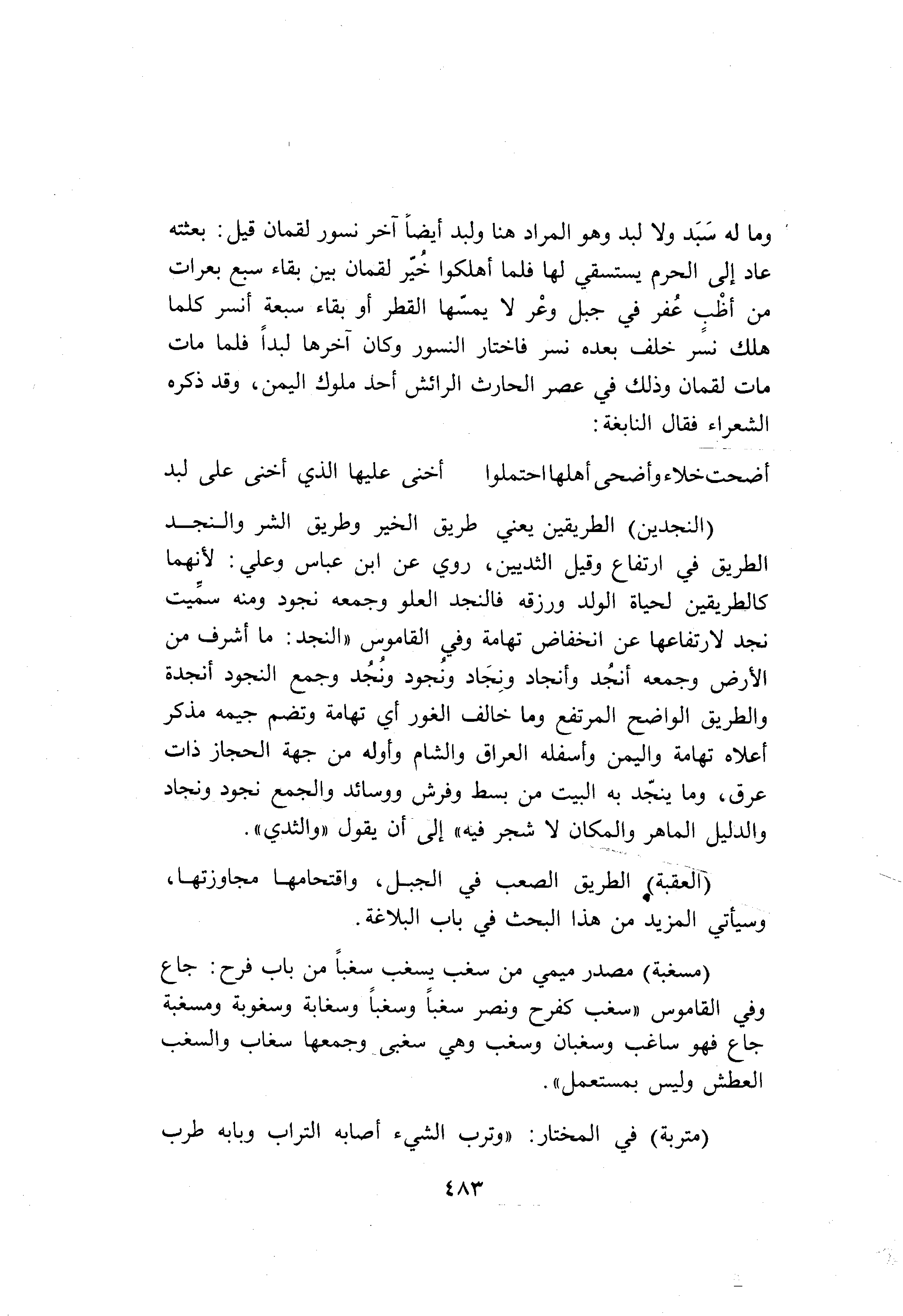 (النَّجْدَيْنِ) الطريقين يعني طريق الخير وطريق الشر والنجد الطريق في ارتفاع وقيل الثديين، روي عن ابن عباس وعلي: لأنهما كالطريقين لحياة الولد ورزقه فالنجد العلو وجمعه نجود ومنه سمّيت نجد لارتفاعها عن انخفاض تهامة وفي القاموس «النجد: ما أشرف من الأرض وجمعه أنجد وأنجاد ونجاد ونجود ونجد وجمع النجود أنجدة والطريق الواضح المرتفع وما خالف الغور أي تهامة وتضم جيمه مذكر أعلاه تهامة واليمن وأسفله العراق والشام وأوله من جهة الحجاز ذات عرق، وما ينجّد به البيت من بسط وفرش ووسائد والجمع نجود ونجاد والدليل الماهر والمكان لا شجر فيه» إلى أن يقول «والثدي» .