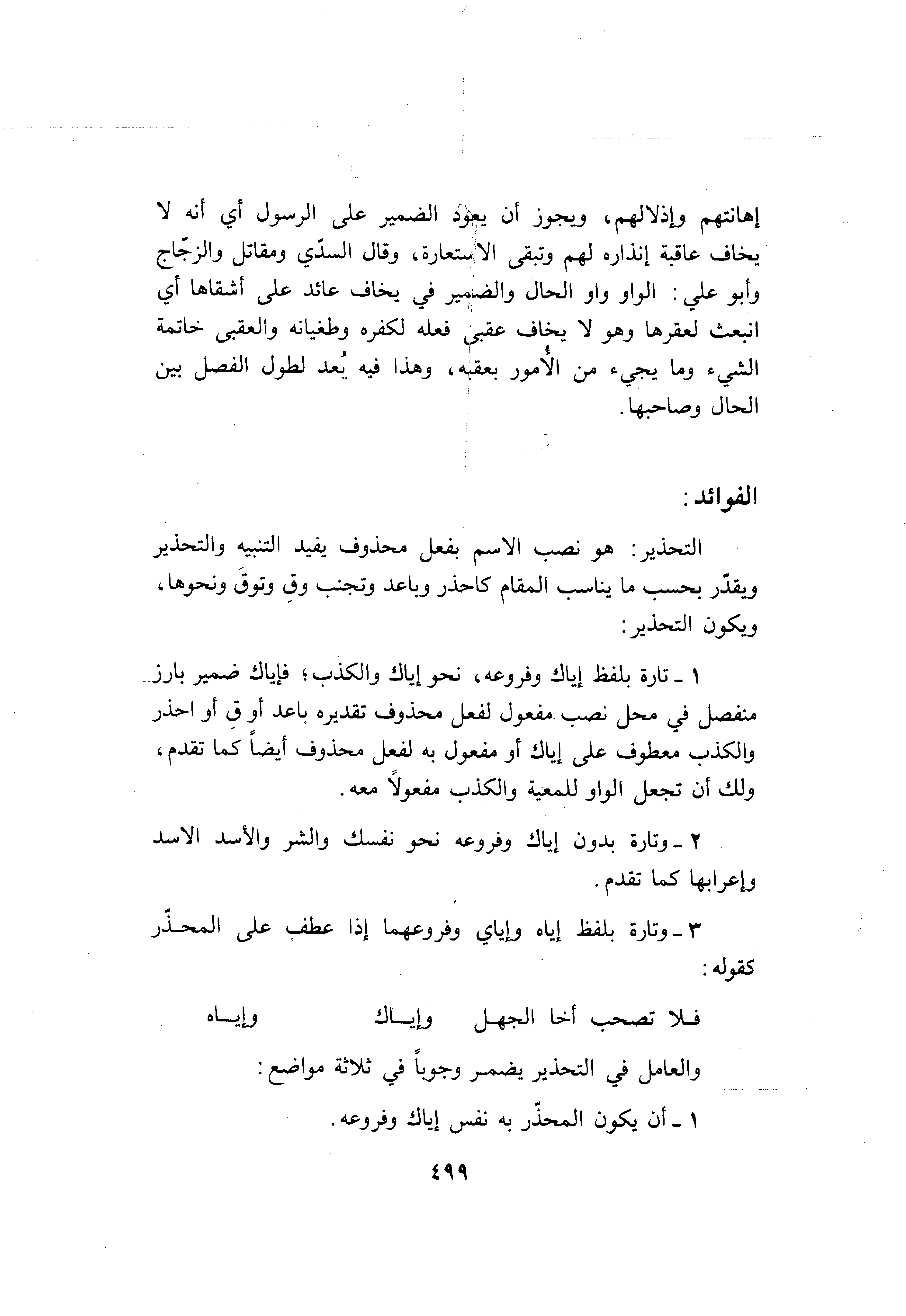 3- وتارة بلفظ إياه وإياي وفروعهما إذا عطف على المحذّر كقوله: