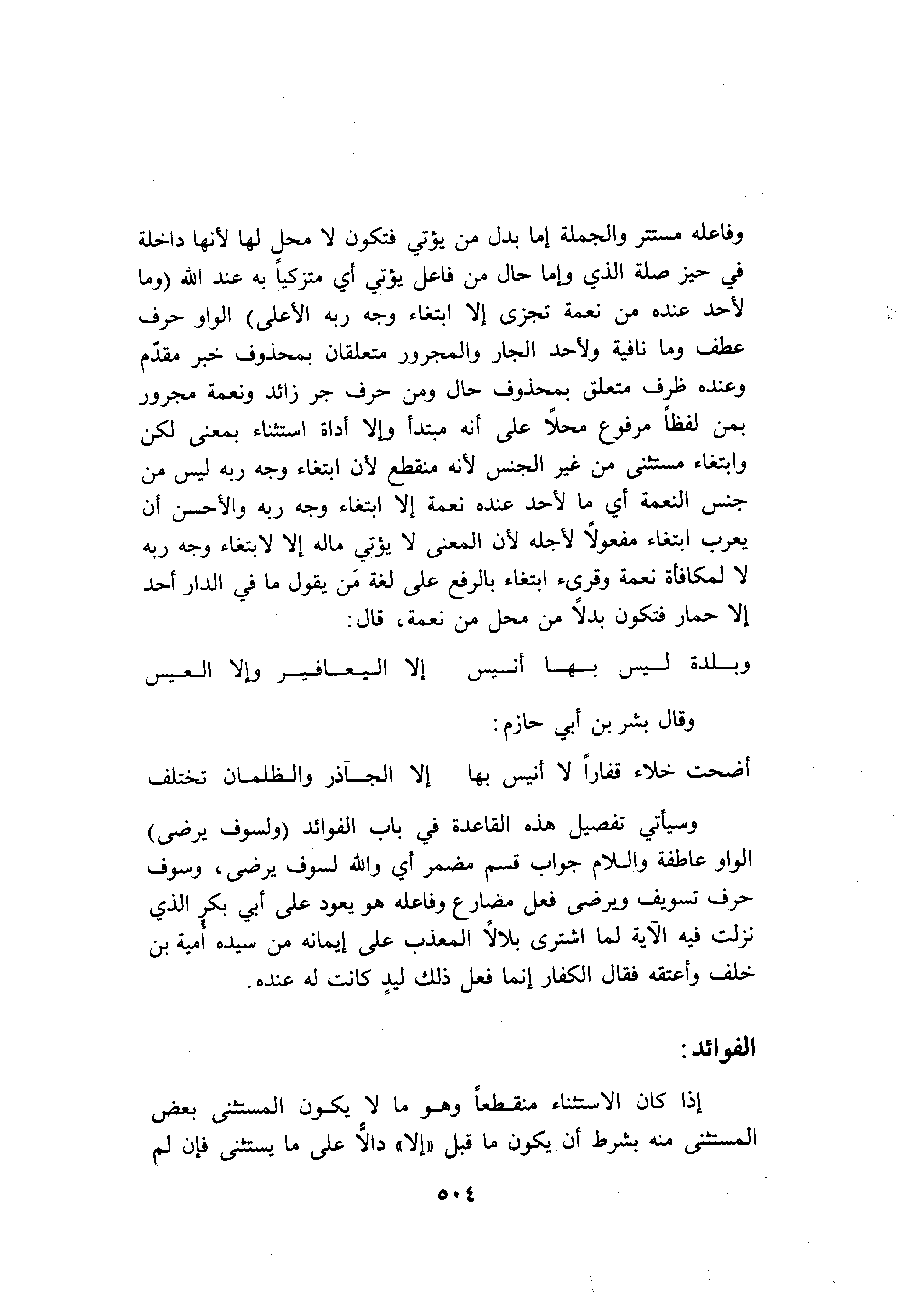إذا كان الاستثناء منقطعا وهو ما لا يكون المستثنى بعض المستثنى منه بشرط أن يكون ما قبل «إلا» دالّا على ما يستثنى فإن لم