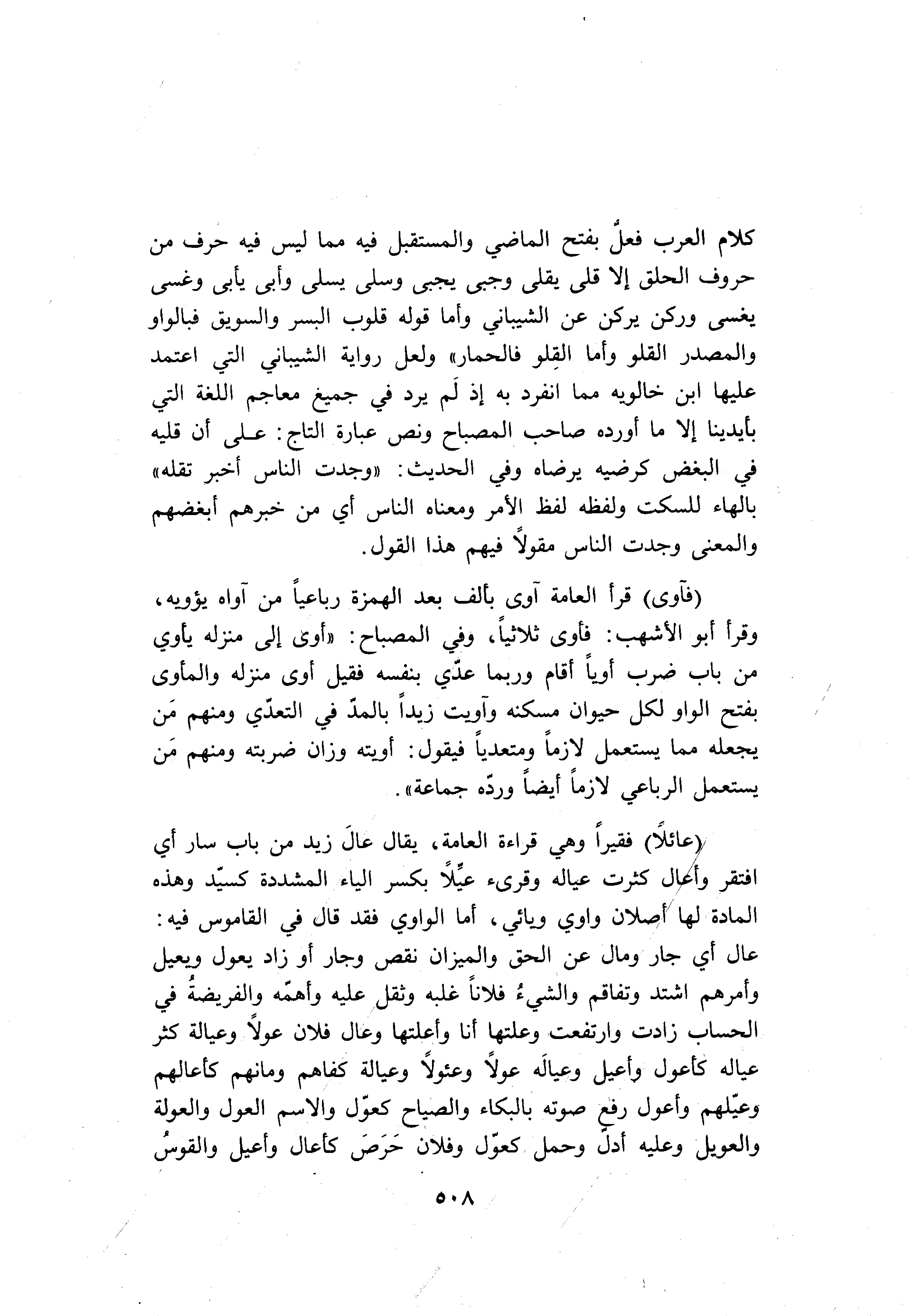 كلام العرب فعل بفتح الماضي والمستقبل فيه مما ليس فيه حرف من حروف الحلق إلا قلى يقلى وجبى يجبى وسلى يسلى وأبى يأبى وغسى يغسى وركن يركن عن الشيباني وأما قوله قلوب البسر والسويق فبالواو والمصدر القلو وأما القلو فالحمار» ولعل رواية الشيباني التي اعتمد عليها ابن خالويه مما انفرد به إذ لم يرد في جميع معاجم اللغة التي بأيدينا إلا ما أورده صاحب المصباح ونص عبارة التاج: على أن قليه في البغض كرضيه يرضاه وفي الحديث: «وجدت الناس أخبر تقله» بالهاء للسكت ولفظه لفظ الأمر ومعناه الناس أي من خبرهم أبغضهم والمعنى وجدت الناس مقولا فيهم هذا القول.