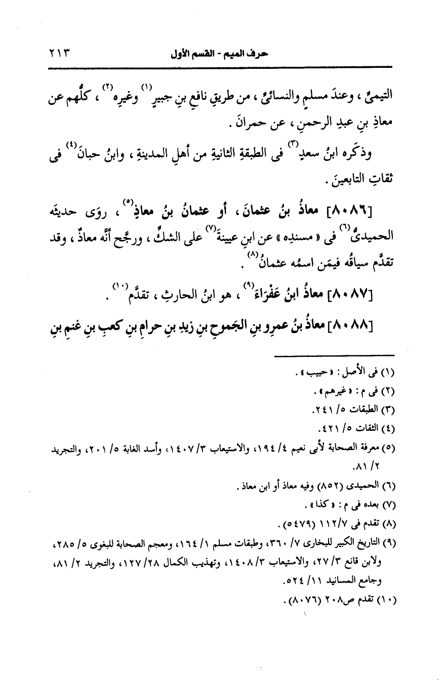 8088- معاذ بن عَمرو بن الجموح بن زيد بن حرام بن كعب بن غنم بن كعب بن سلمة، الأَنصارِيّ الخزرجي السلمي.