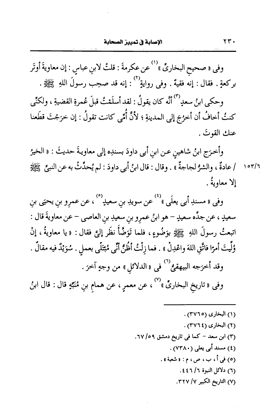 وفي صحيح البُخارِيّ، عَن عكرمة قلت: لابن عباس إن معاوية أوتر بركعة فقال أنه فقيه وفي رواية أنه صحب رسول الله صلى الله عليه وآله وسلم.