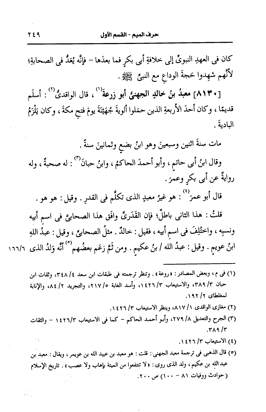 قلتُ: هذا الثاني باطل فإن القدري وافق هذا الصحابي في اسم أَبيه ونسبه واختلف في اسم أَبيه فقيل خالد مثل الصحابي وقيل عَبد الله بن عويم وقيل عبد بن عكيم ومن ثم زعم بعضهم أنه ولد الذي روى حديث "لا تنتفعوا من الميتة بإهاب ولا عصب".