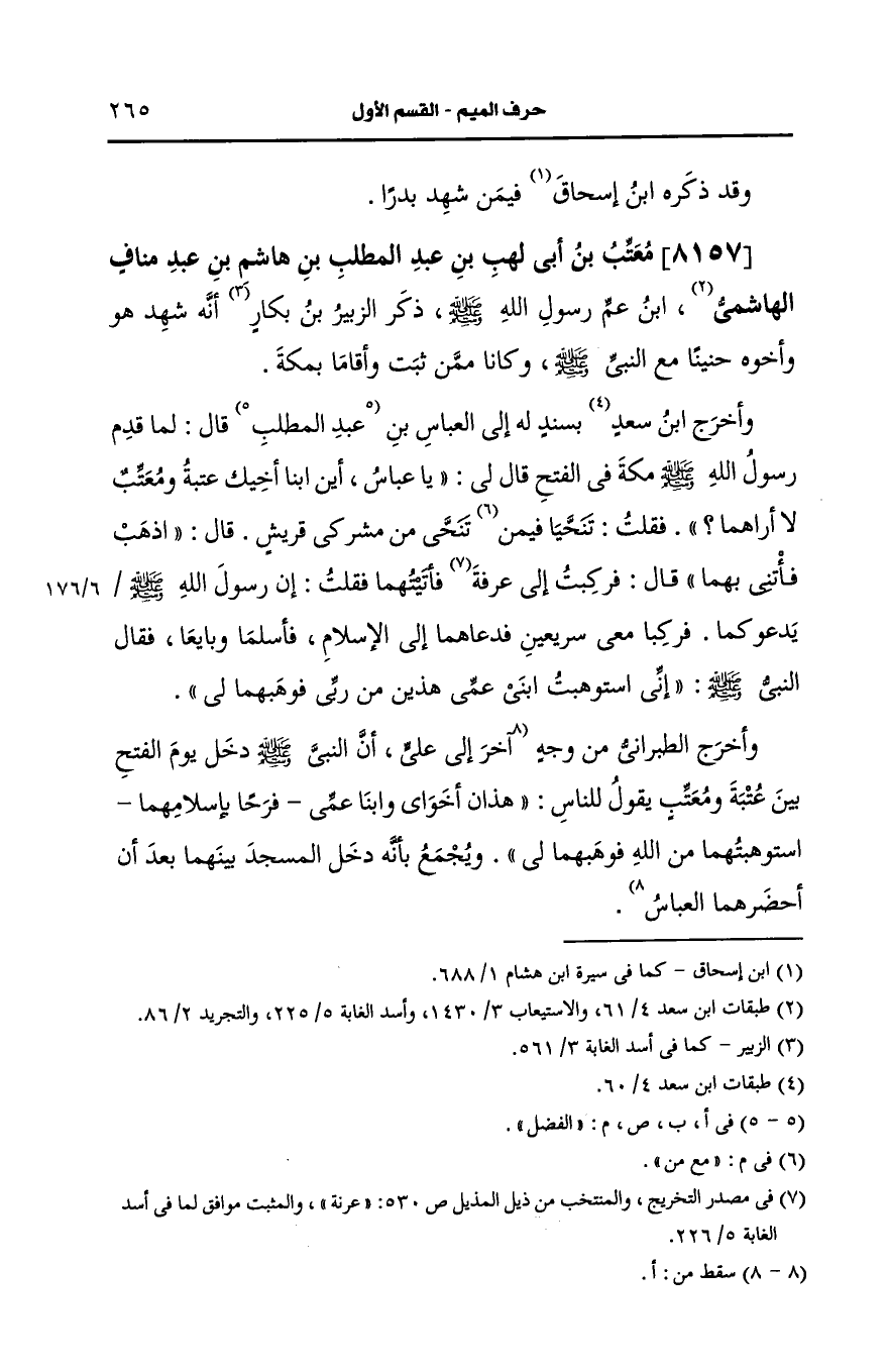 8157- مُعَتِّب بن أبي لهب بن عبد المطلب بن هاشم بن عبد مناف الهاشمي، ابن عم رسول الله صلى الله عليه وآله وسلم.