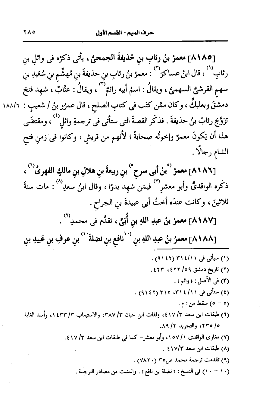 8185- معمر بن رئاب بن حذيفة الجمحي.