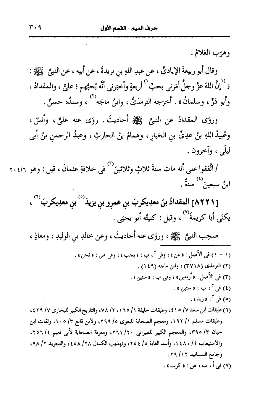 8221- المقداد بن مَعدِي كَرِب بن عَمرو بن يزيد بن مَعدِي كَرِب.