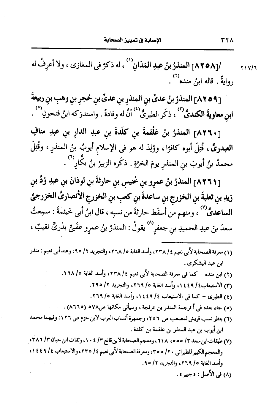 8261- المنذر بن عَمرو بن خنيس بن حارثة بن لوذان بن عبد ود بن زيد بن ثعلبة بن الخزرج بن ساعدة بن كعب بن الخزرج، الأَنصارِيّ الخزرجي الساعدي.