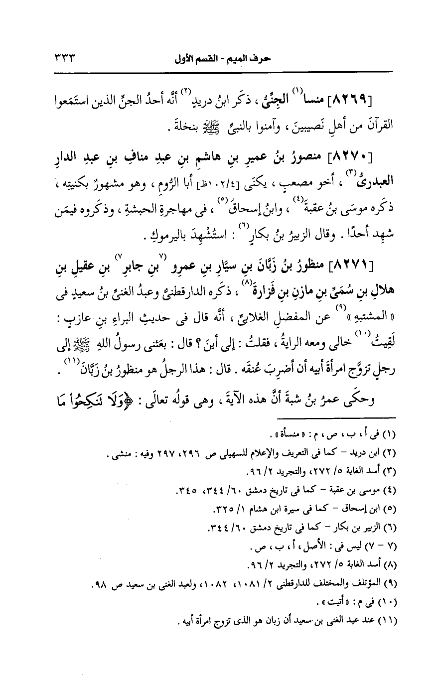 8270- منصور بن عمير بن هاشم بن عبد مناف بن عبد الدار العبدري.