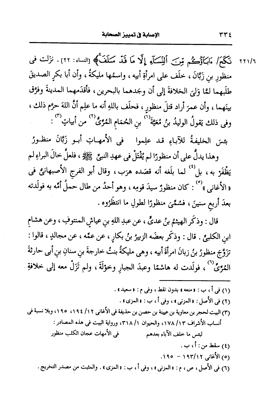وقال أَبو الفرج الأصبهاني في الأغاني كان منظور سيد قومه، وهُو أَحَد من طال حمل أمه به فولدته بعد أربع سنين فسمى منظورا لطول ما انتظروه قال وذكر الهيثم بن عدي، عَن عَبد الله بن عياش المنتوف وعن هشام بن الكلبي قال وذكر بعضه الزبير بن بكار، عَن عمه، عَن مجالد قالوا تزوج منظور بن زبان امرأة أَبيه وهي مليكة بنت خارجة بن سنان بن أبي حارثة المزني فولدت له هاشما وعبد الجبار وخوله ولم تزل معه إلى خلافة عمر فرفع أمره إلى عمر فأحضره وسأله عما قيل فيه من شربه الخمر ونكاحه امرأة أَبيه فاعترف بذلك وقال ما علمت أن هذا حرام فحبسه إلى قرب صلاة العصر ثم أحلفه أنه لم يعلم أن الله حرم ذلك فحلف فيما ذكروا أربعين يمينا ثم خلى سبيله وفرق بينه وبين مليكة وقال لوا أنك حلفت لضربت عنقك.