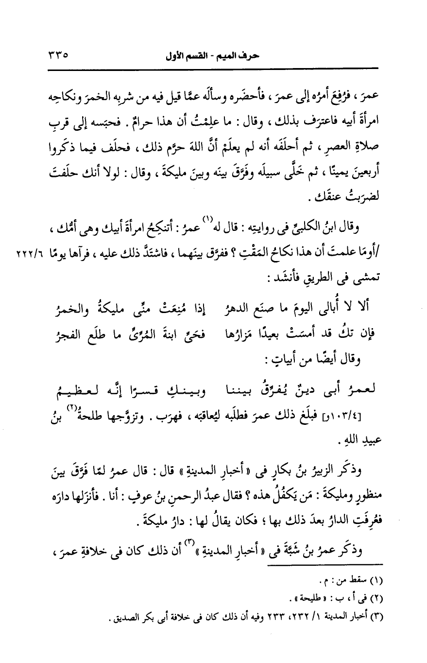 وذكر عمر بن شبة في أخبار المدينة أن ذلك كان في خلافة عمر كما سأذكره في ترجمة مليكة في النساء.