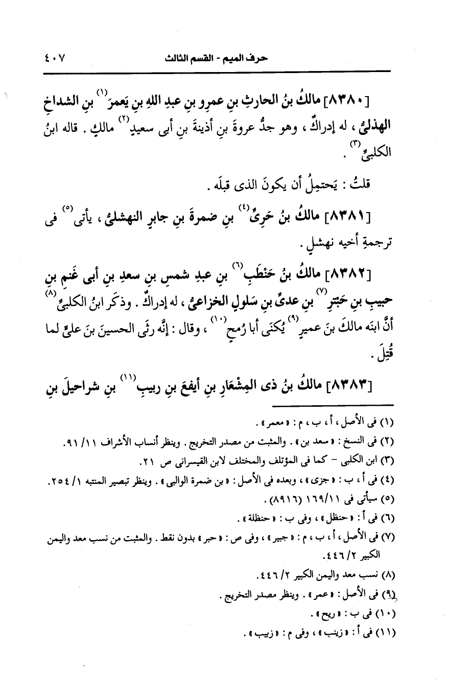 8380- مالك بن الحارث بن عَمرو بن عَبد الله بن يعمر بن الشداخ الهذلي.