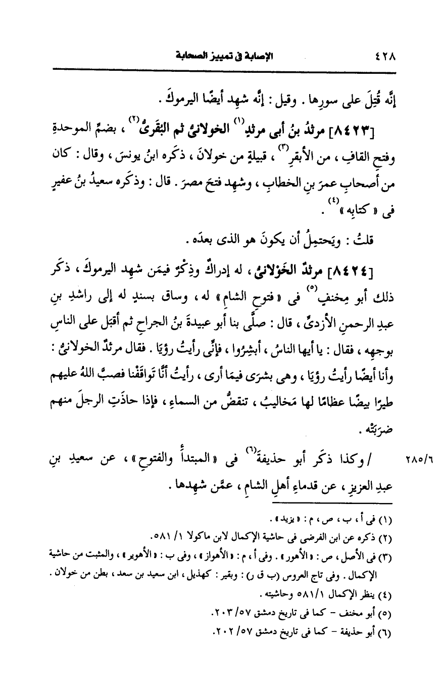 وذكر ابن عساكر هذه القصة في ترجمة مرثد الخولاني وفيه نظر لأن بن سمي يصغر، عَن ذلك وأكثر ما وصف بإدراك علي ومعاوية.