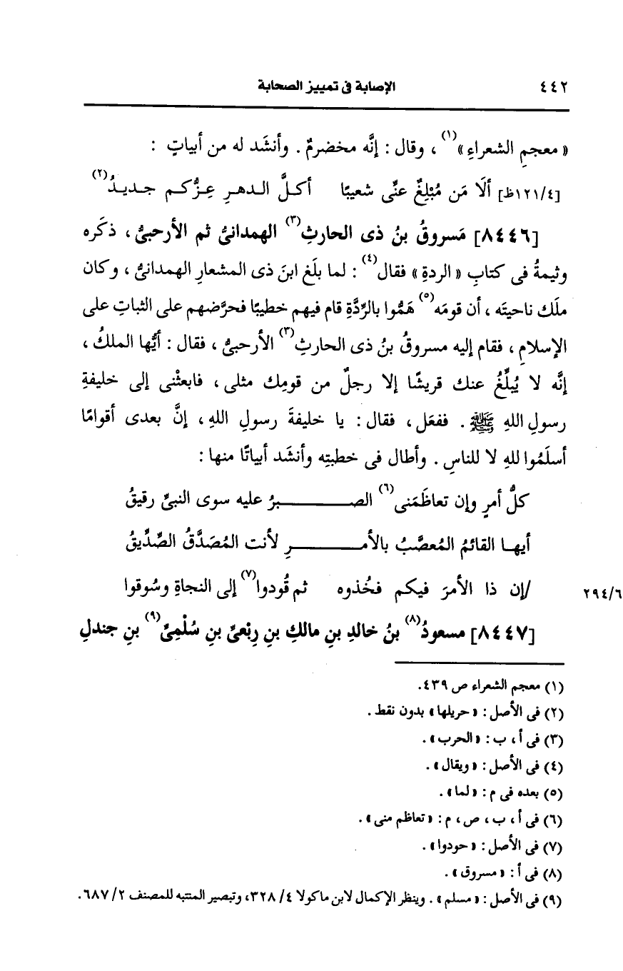 8446- مسروق بن ذي الحارث الهمداني ثم الأرحبي.