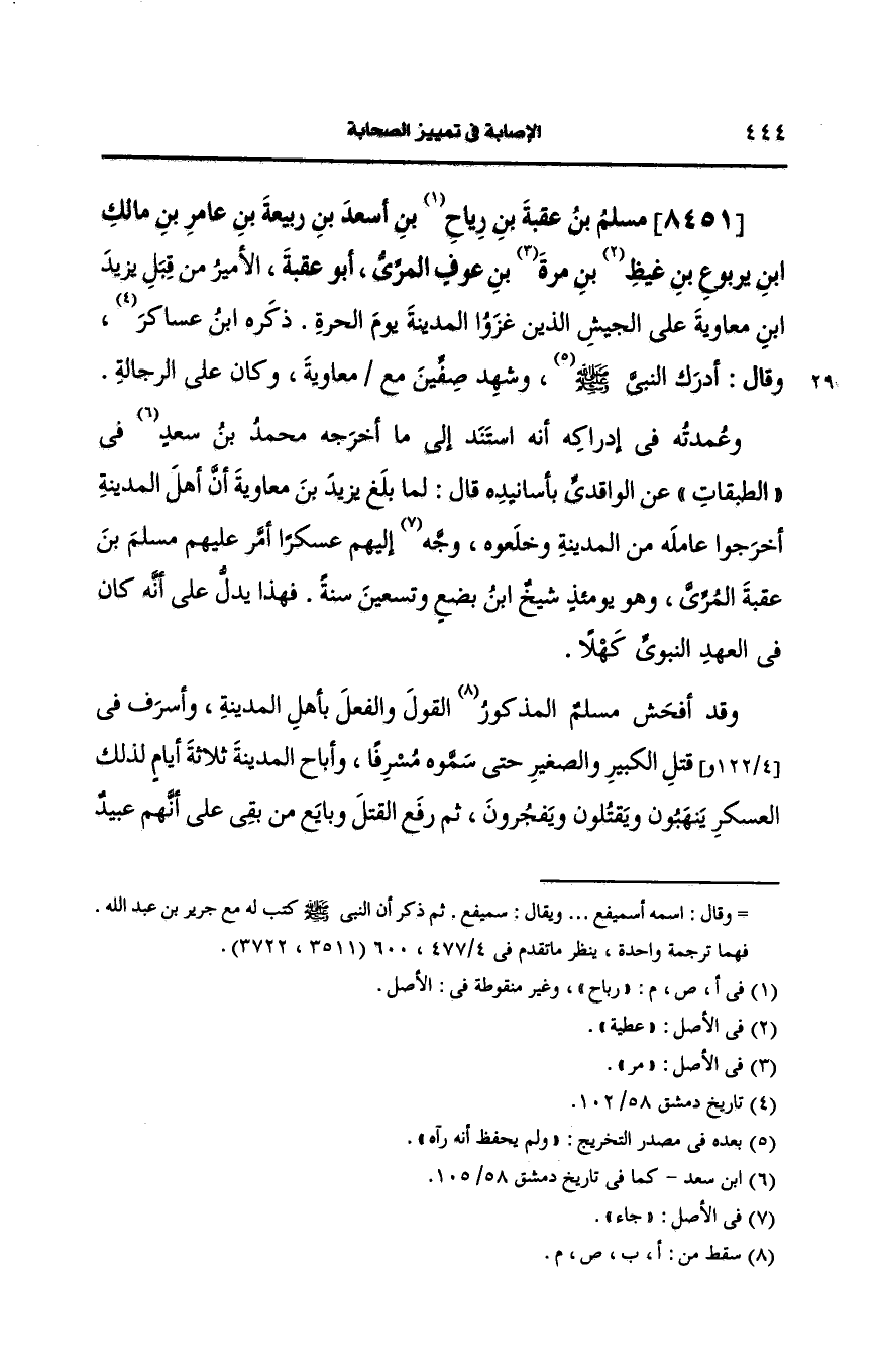 8451- مسلم بن عقبة بن رباح بن أَسعد بن ربيعة بن عامر بن مالك بن يربوع بن غيظ بن مرة بن عوف المري أَبو عقبة.