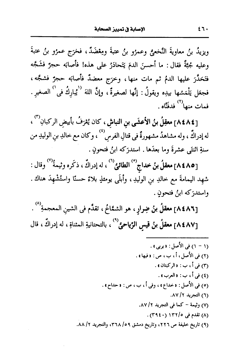 8484- معقل بن الأعشى بن النباش كان يعرف بأبيض الركبان.