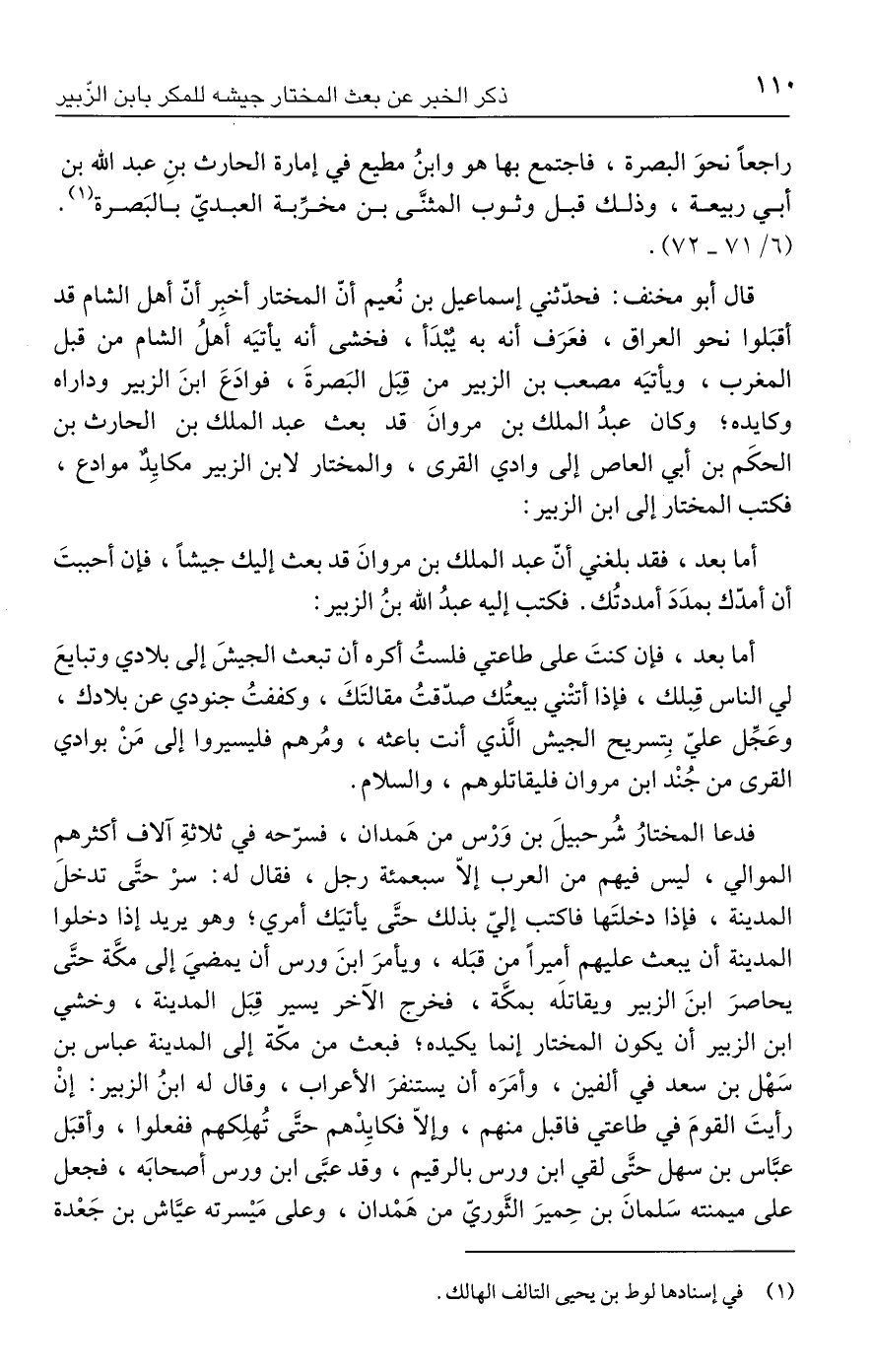 راجعًا نحوَ البصرة، فاجتمع بها هو وابنُ مطيع في إمارة الحارث بنِ عبد الله بن أبي ربيعة، وذلك قبل وثوب المثنَّى بن مخرِّبة العبديّ بالبَصرة (١). (٦/ ٧١ - ٧٢).
