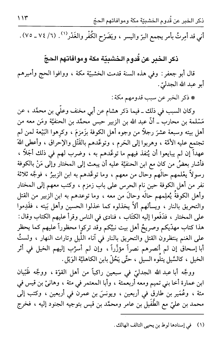 قال أبو جعفر: وفي هذه السنة قدمت الخشبيّة مكة، ووافوا الحج وأميرهم أبو عبد الله الجدليّ.