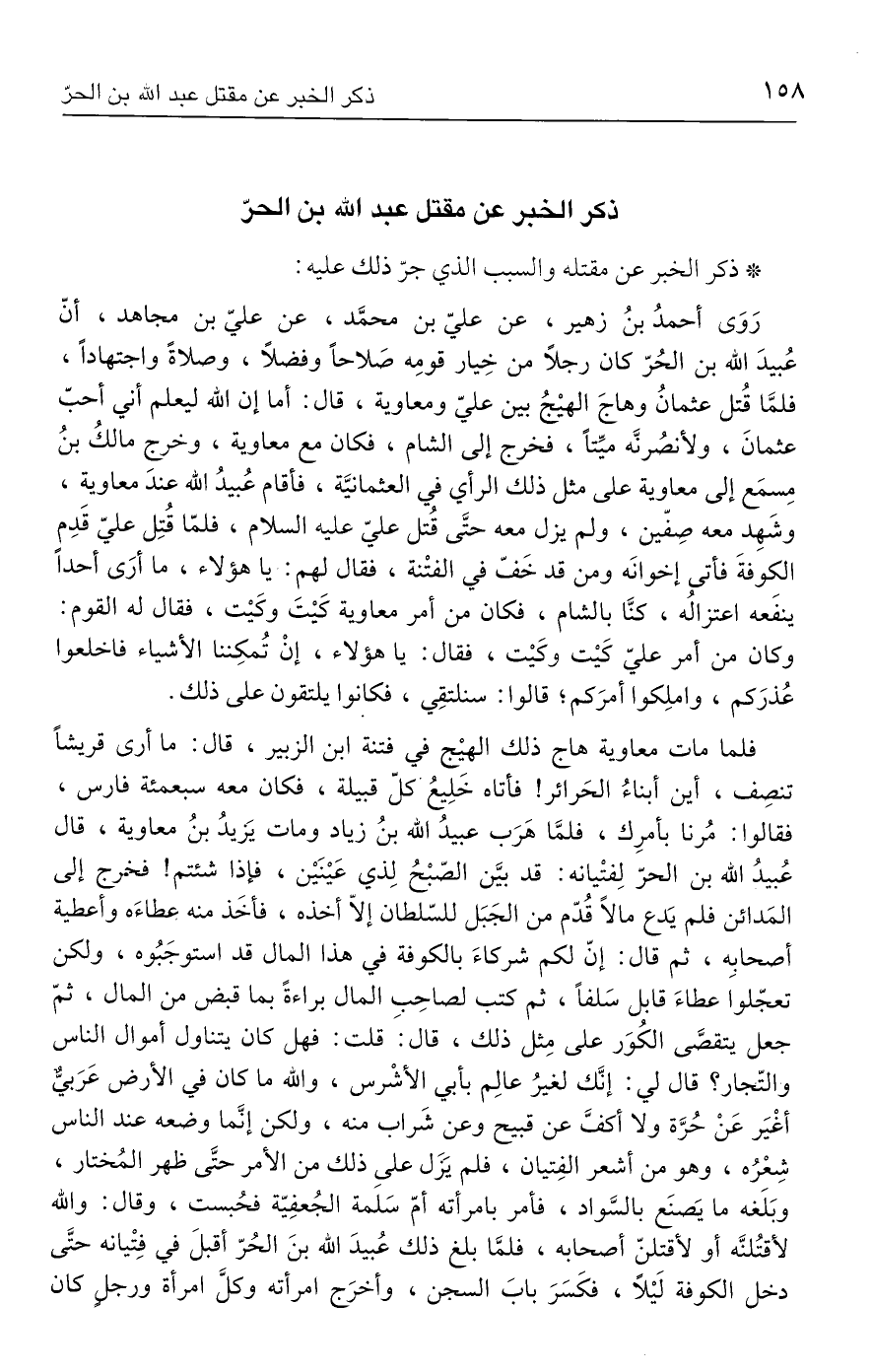 ذكر الخبر عن مقتل عبد الله بن الحرّ