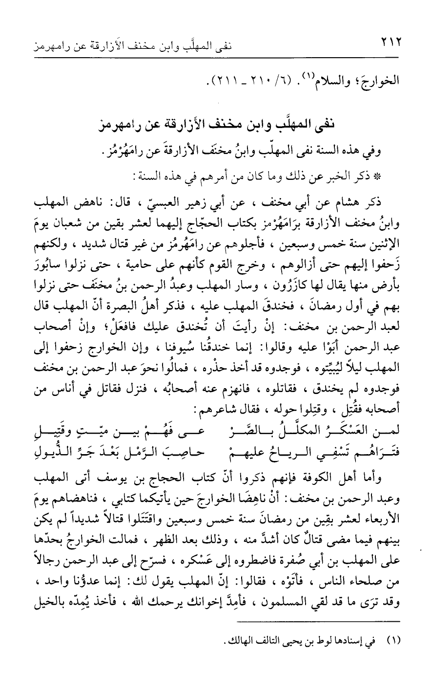نفي المهلَّب وابن مخنف الأَزارقة عن رامهرمز