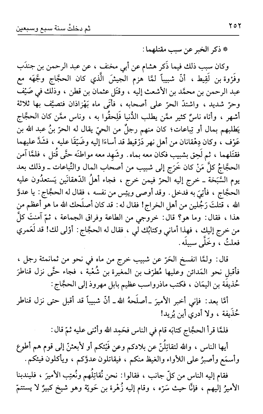 أمَّا بعد: فإني أخبر الأميرَ - أصلَحهُ الله - أنّ شبيبًا قد أقبل حتى نزل قناطر حُذَيفة، ولا أدري أين يُريد!