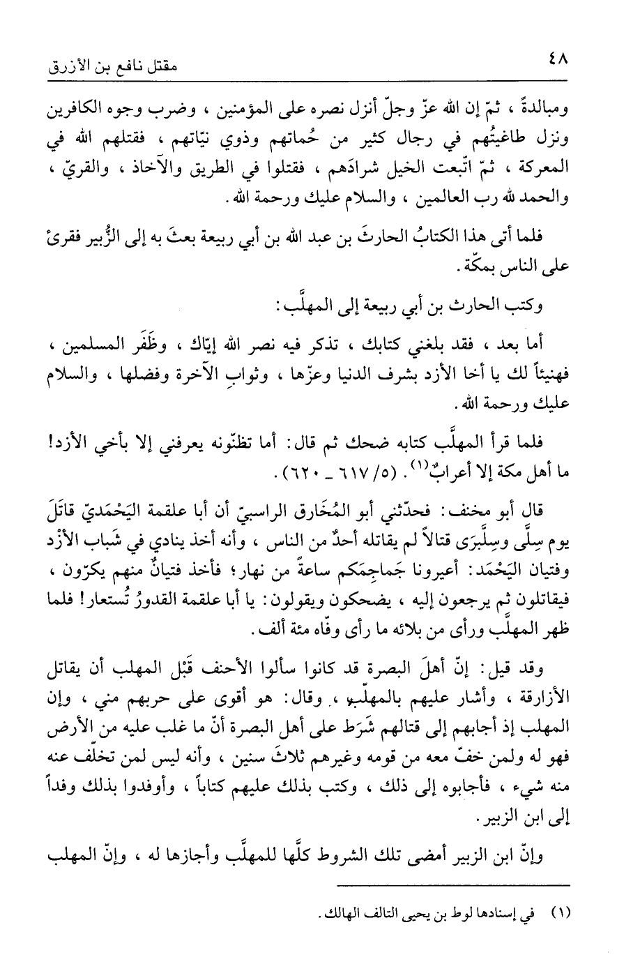 وإنّ ابن الزبير أمضى تلك الشروط كلَّها للمهلَّب وأجازها له، وإنّ المهلب