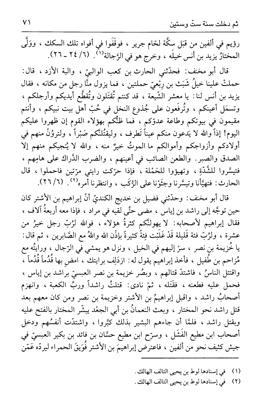 (٢) في إسنادها لوط بن يحيى التالف الهالك.