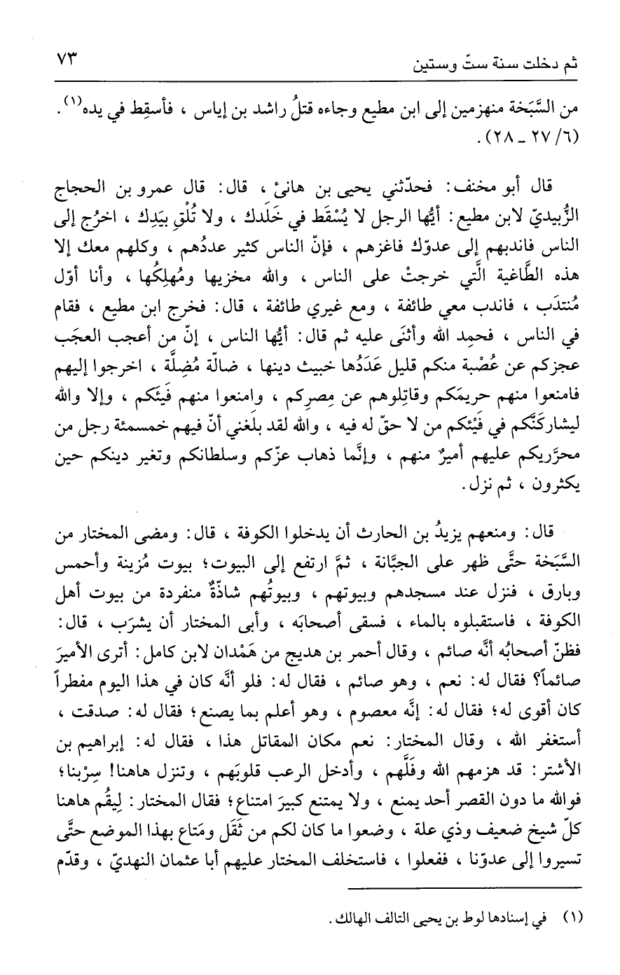 من السَّبَخة منهزمين إلى ابن مطيع وجاءه قتلُ راشد بن إياس، فأسقِط في يده (١) (٦/ ٢٧ - ٢٨).