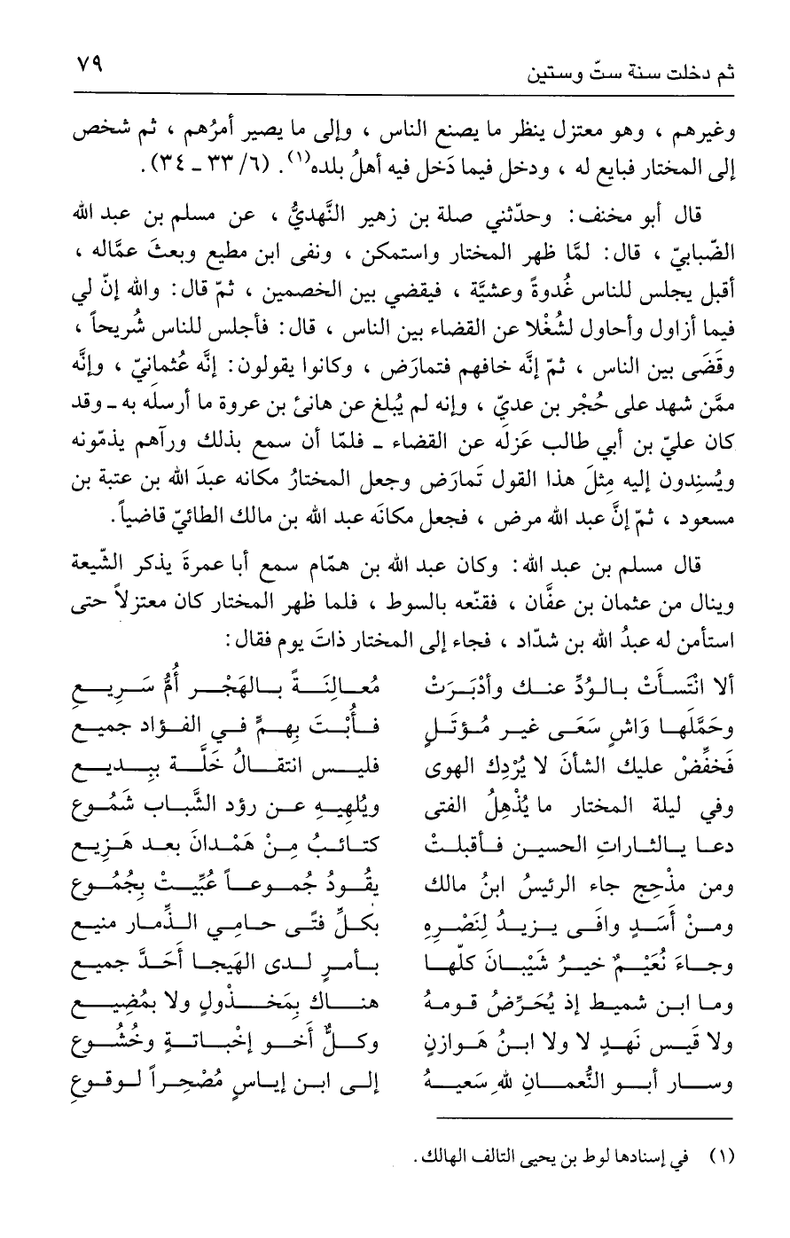 وغيرهم، وهو معتزل ينظر ما يصنع الناس، وإلى ما يصير أمرُهم، ثم شخص إلى المختار فبايع له، ودخل فيما دَخل فيه أهلُ بلده (١). (٦/ ٣٣ - ٣٤).