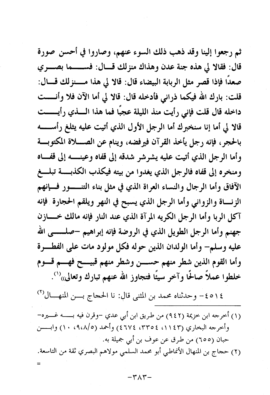 4514- وحَدَّثناه مُحَمَّدُ بْنَ الْمُثَنَّى، قَال: حَدَّثنا الحجاج بن المنهال، قَال: حَدَّثنا جَرِيرُ بْنُ حَازِمٍ، عَن أَبِي رَجَاءٍ عَنْ سَمُرة، رَضِي اللَّهُ عَنْهُ، أَنَّ النَّبيَّ صَلَّى الله عَلَيه وَسَلَّم كان إذا صلى صلاة الصُّبْحَ اسْتَقْبَلَنَا بِوَجْهِهِ، ثُمَّ قَالَ هَلْ رَأَى مِنْكُمْ أَحَدٌ رُؤْيَا.