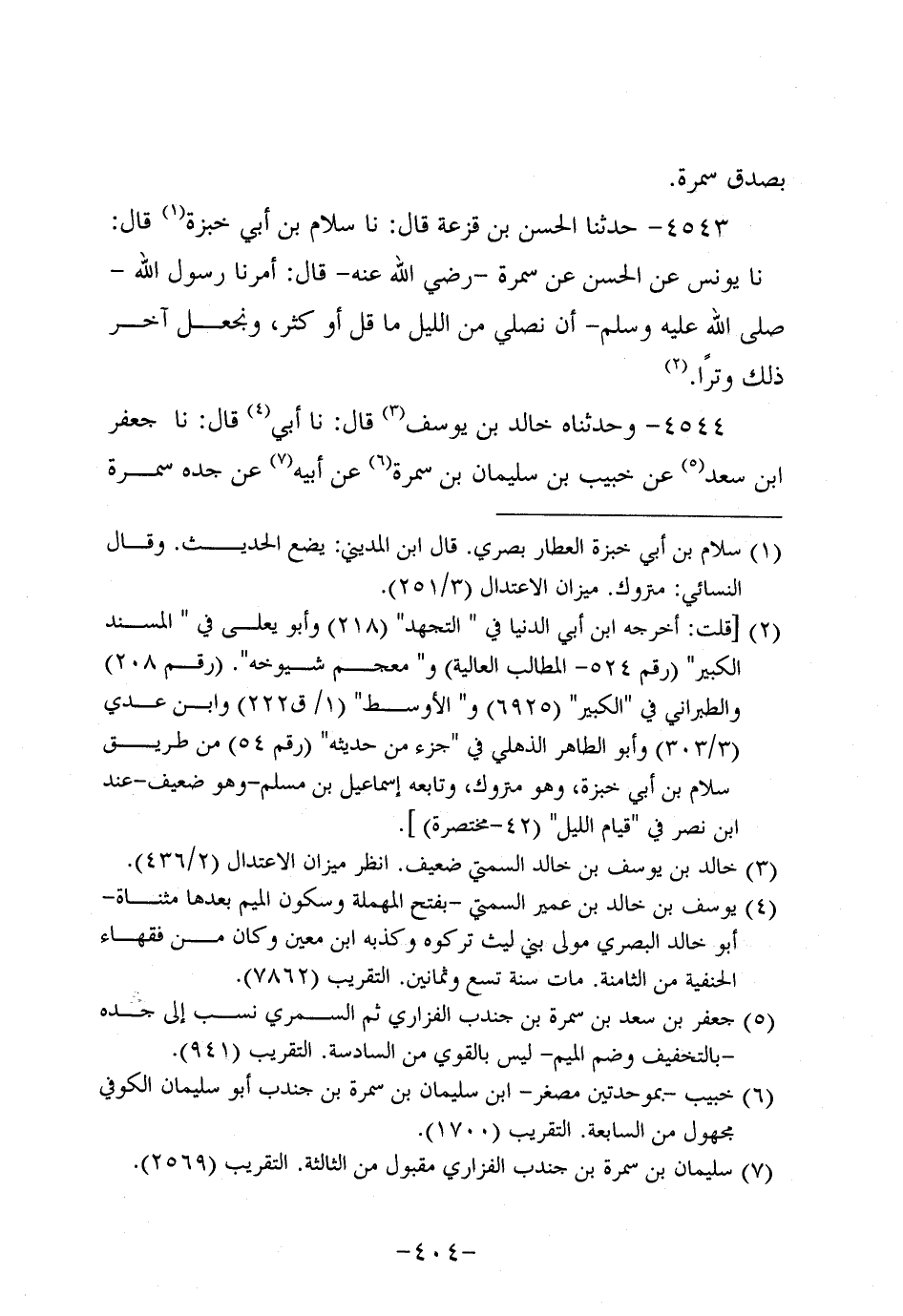 4543- حَدَّثنا الحسن بن قزعة، قَال: حَدَّثنا سلام بن أبي خبزة، قَال: حَدَّثنا يُونُسَ عَنِ الْحَسَنِ عَنْ سَمُرة، رَضِي اللَّهُ عَنْهُ، قَالَ: أَمَرَنَا رَسُولُ اللَّهِ صَلَّى اللَّهُ عَلَيه وَسَلَّم أَنْ نُصَلِّيَ مِنَ اللَّيْلِ مَا قَلَّ، أَوْ كَثُرَ وَنَجْعَلَ آخِرَ ذَلِكَ وِتْرًا.