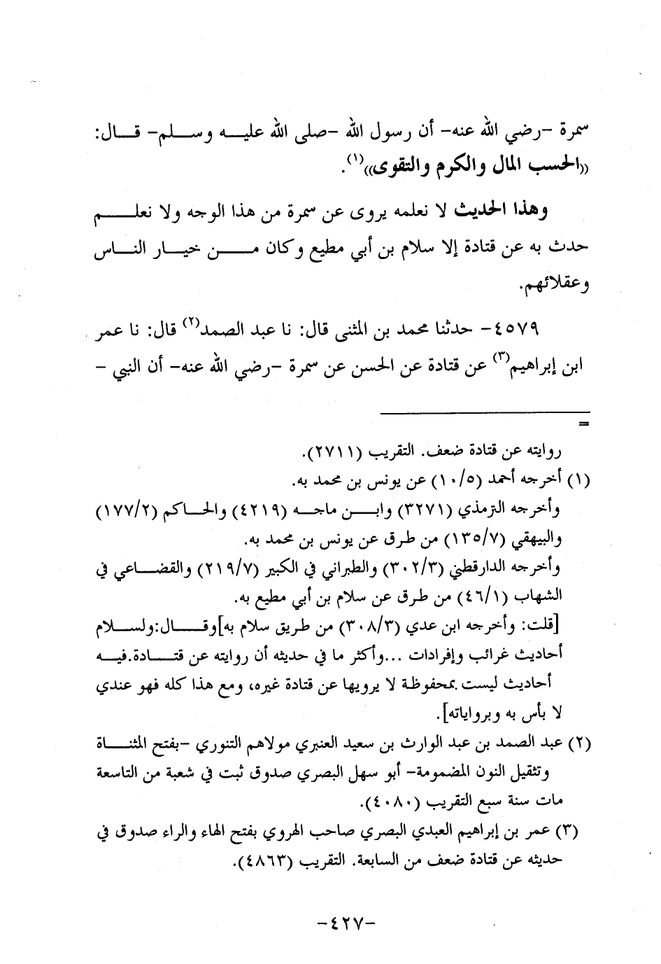 وَهَذَا الْحَدِيثُ أَحْسَبُ أَنَّ عُمَر بْنَ إِبْرَاهِيمَ أَخْطَأَ فِيهِ إِذْ رَوَاهُ، عَنْ قَتَادَةَ، عَن الْحَسَنِ عَنْ سَمُرة، وَإنَّما يَرْوِيهِ الثِّقَاتُ، عَنْ قَتَادَةَ، عَن سَعِيد بْنِ الْمُسَيَّب، عَن ابْنِ عُمَر عَنْ عُمَر، وعَن قَتَادَةَ، عَن قَزَعَةَ، عَن ابْنِ عُمَر عَنْ عُمَر، وعَن قَتَادَةَ، عَن يَحيى بْنِ رُؤْبَةَ، عَن ابْنِ عُمَر عَنْ عُمَر، ولاَ نَعْلَمُ تَابَعَ عُمَر بْنَ إِبْرَاهِيمَ عَلَى رِوَايَتِهِ أَحَدٌ مِنْ أَصْحَابِ قَتَادَةَ، ولاَ نَعْلَمُهُ يُرْوَى عَن سَمُرة إلاَّ مِنْ هَذَا الْوَجْهِ وَعِنْدَ عُمَر بْنُ إِبْرَاهِيمَ، عَنْ قَتَادَةَ، عَن الْحَسَنِ عَنْ سَمُرة ثَلاثَةُ أَحَادِيثَ لَمْ يُتَابَعْ عَلَيْهَا هَذَا أحدها.