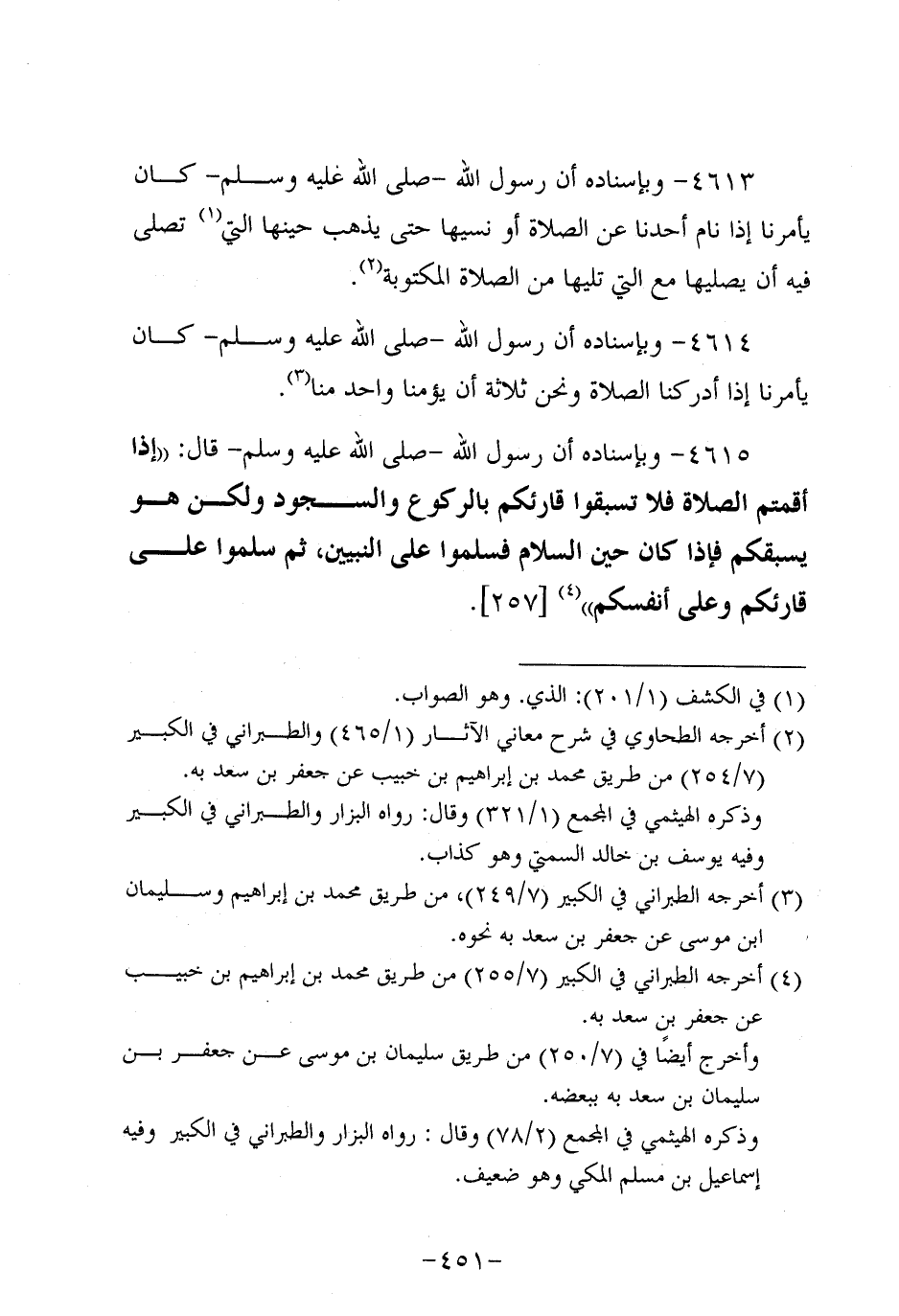 4615- وَبِإِسْنَادِهِ أَنَّ رَسُولَ اللهِ صَلَّى اللَّهُ عَلَيه وَسَلَّم قَالَ: إِذَا أَقَمْتُمُ الصَّلاةَ فَلا تَسْبِقُوا قَارِئَكُمْ بِالرُّكُوعِ وَالسُّجُودِ، وَلكن هُوَ يَسْبِقُكُمْ فَإِذَا كَانَ حِينَ السَّلامِ فَسَلِّمُوا عَلَى النَّبِيِّينَ، ثُمَّ سَلِّمُوا عَلَى قَارِئِكُمْ وَعَلَى أَنْفُسِكُمْ.