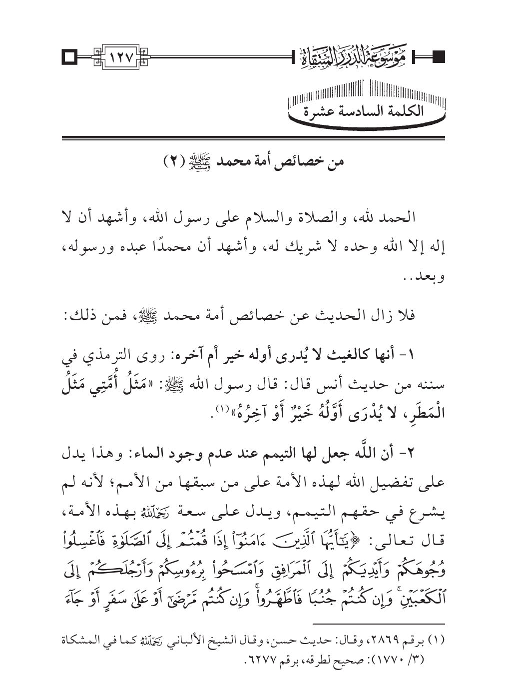 من خصائص أمة محمد - صلى الله عليه وسلم - (٢)