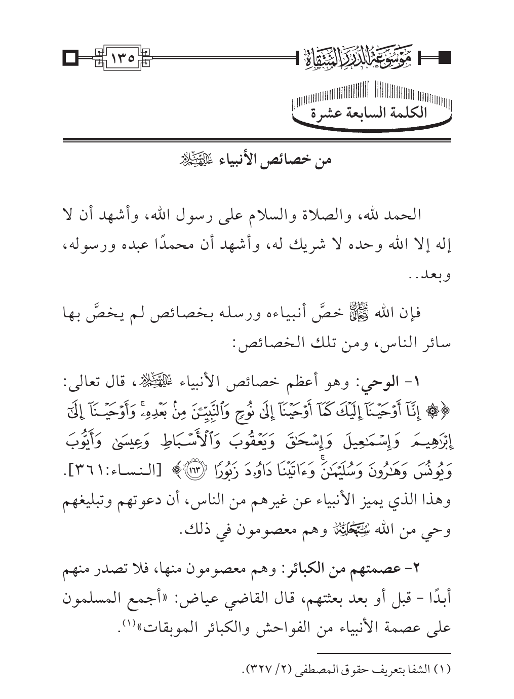 (¬١). الشفا بتعريف حقوق المصطفى (٢/ ٣٢٧).