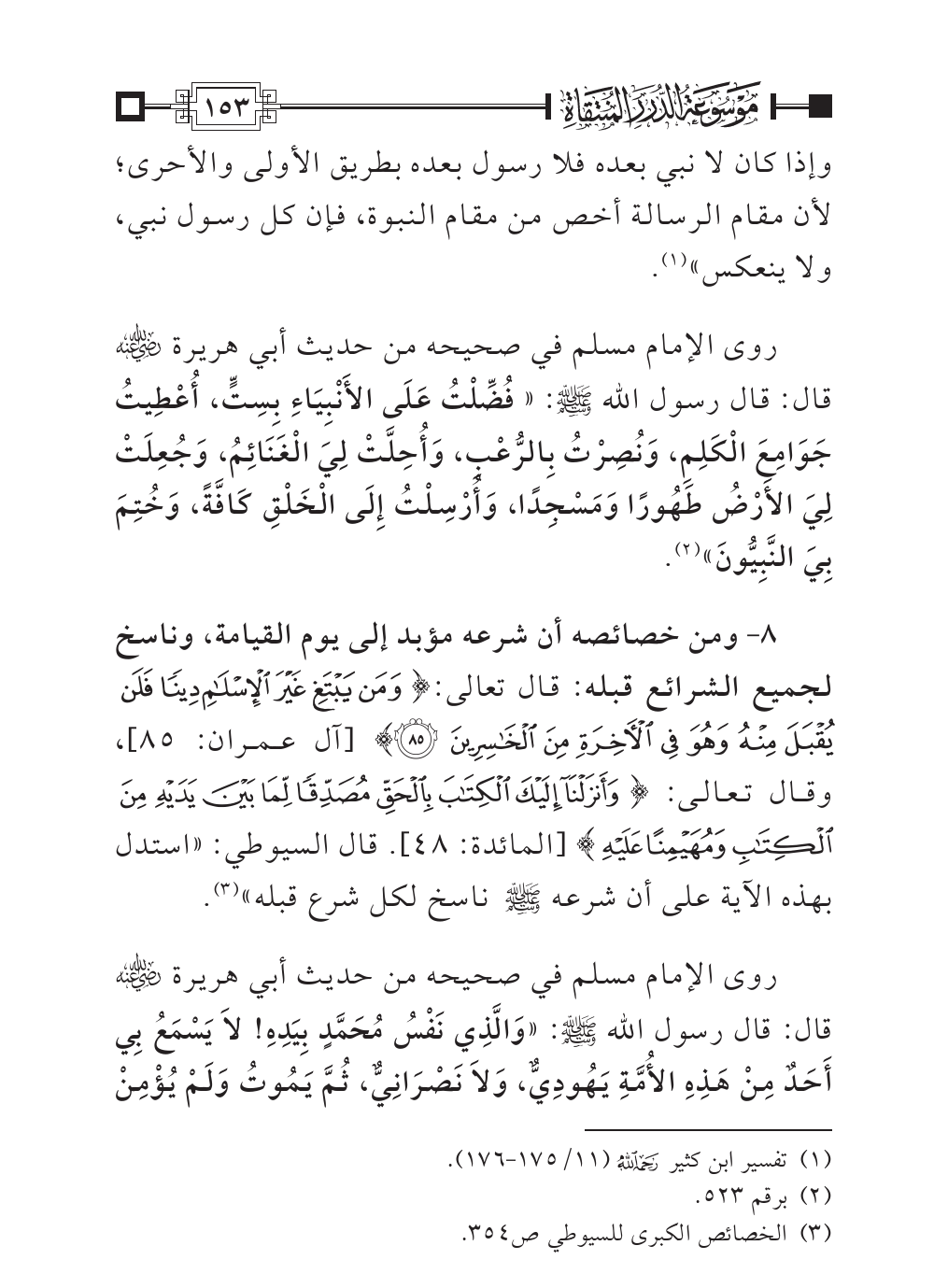 (¬٣). الخصائص الكبرى للسيوطي ص ٣٥٤.