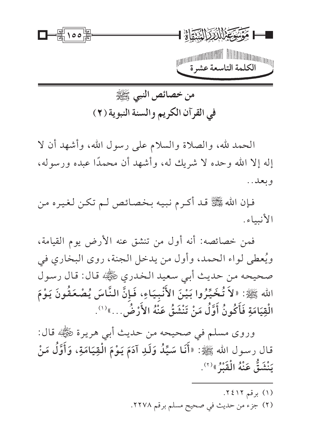 من خصائص النبي - صلى الله عليه وسلم - في القرآن الكريم والسنة النبوية (٢)